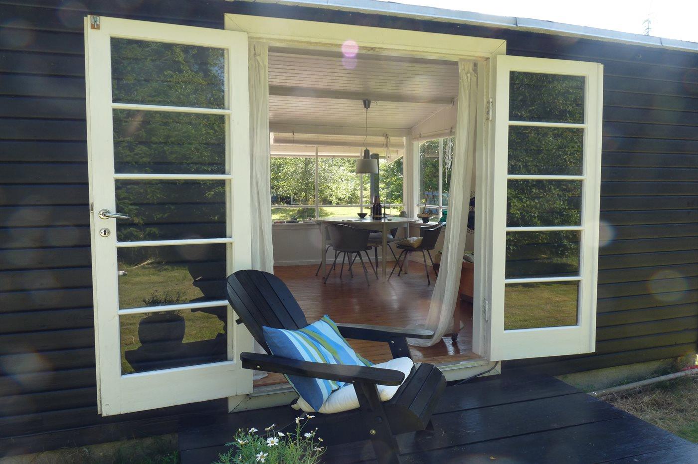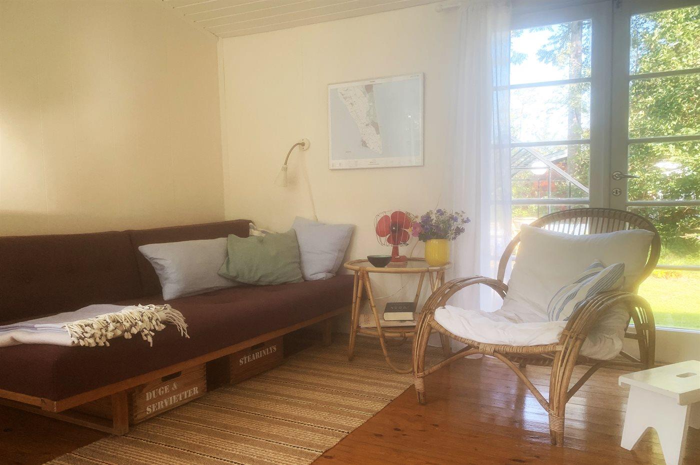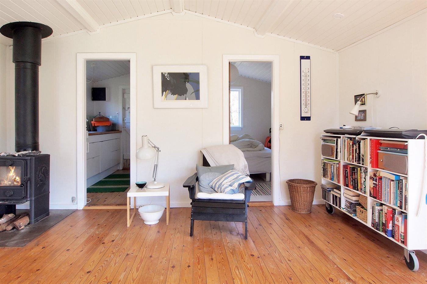 Dieses kleine, gemütlich eingerichtete Ferienhaus liegt in einem Gebiet mit kinderfreundlichem Badestrand. Übrigens: Der Schlafplatz auf der Schlafcouch befindet sich im Wohnzimmer.