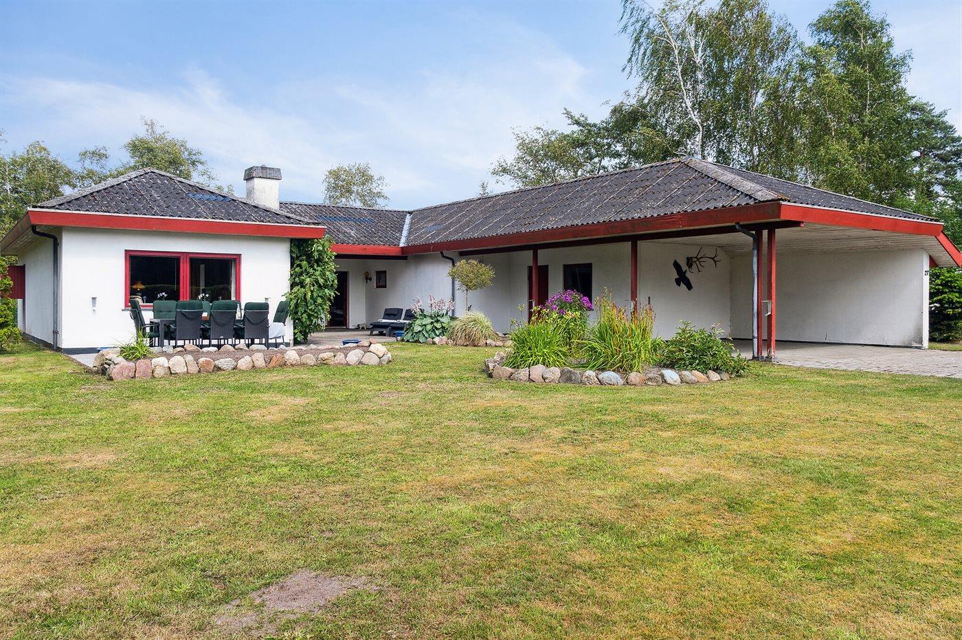 Die Ferienunterkunft liegt auf einem 1170 m² großen Naturgrundstück. Die Entfernung zum Meer beträgt 550 m. Die nächste Einkaufsmöglichkeit liegt 3500 m entfernt. Es steht ein offenes Terrassenareal zur Verfügung. Außerdem gibt es überdachte Terrasse.Lagerfeuerstelle. Es steht ein Grill zur Verfügung. Es steht ein Carport zur Verfügung. Parkplatz auf dem Grundstück.