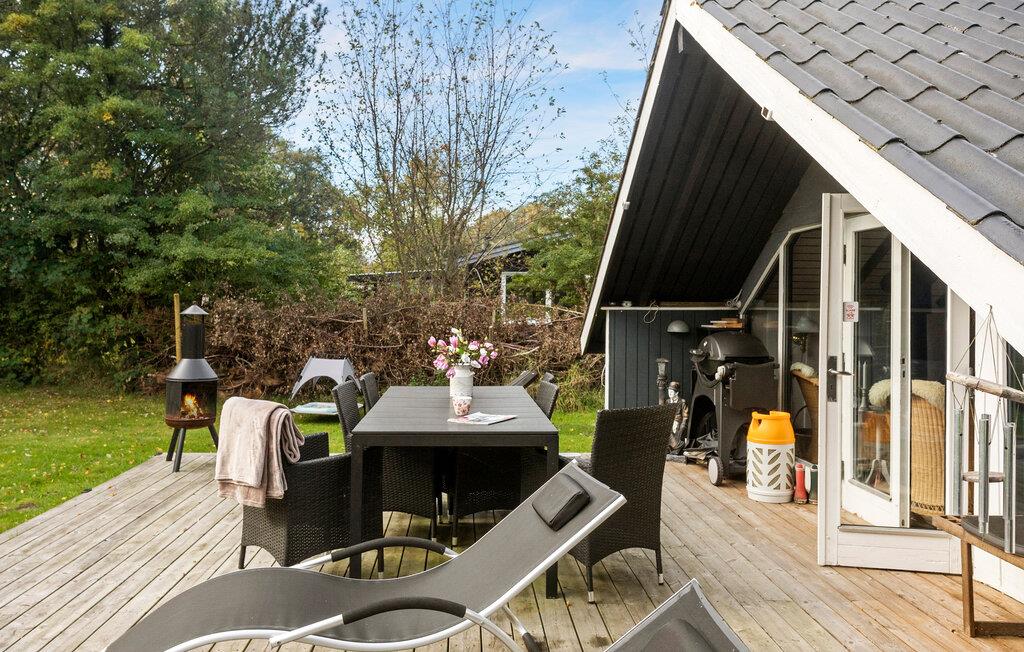 Gemütliches Ferienhaus in Gedesby mit großer Terrasse, Kaminofen und eingezäuntem Garten nahe dem Strand.