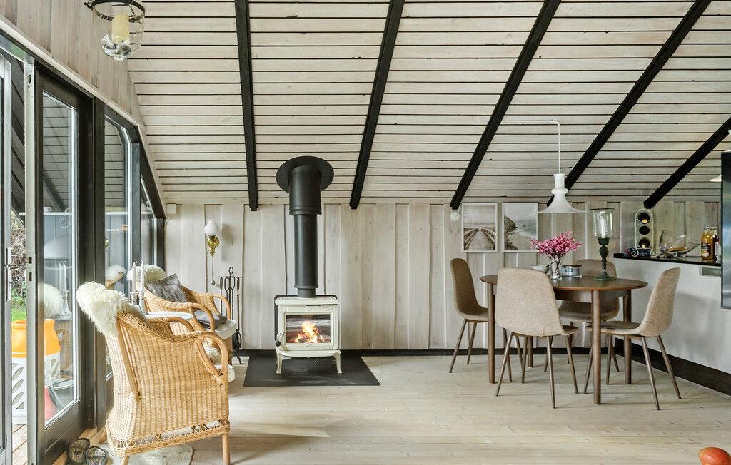 Dieses charmante Ferienhaus besticht durch seine gemütliche Atmosphäre und eine stilvolle Kombination aus heller und dunkler Holzverkleidung. Die Einrichtung ist liebevoll gestaltet und lädt zu entspannten Stunden ein. Lassen Sie den Alltag hinter sich, machen Sie es sich im wohnlichen Wohnzimmer bequem und bereiten in der offenen Küche köstliche Urlaubsgerichte zu. Die großzügige Terrasse ist ideal, um im Freien zu grillen, zu essen und die Sonne zu genießen, während Kinder im Garten spielen.