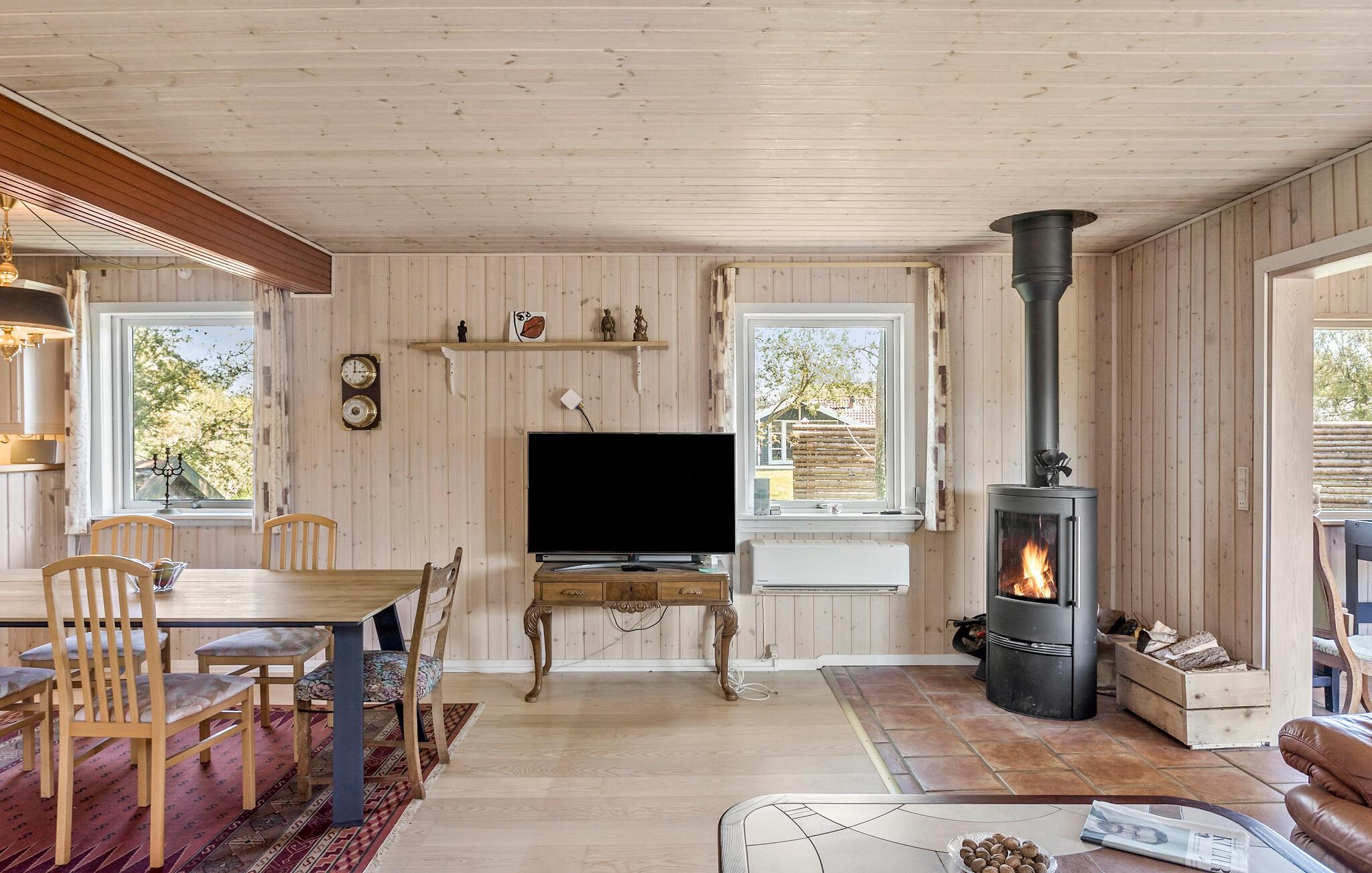 Modernes Ferienhaus auf Falster mit Kamin, Garten und Strandnähe für entspannte Familienurlaube.