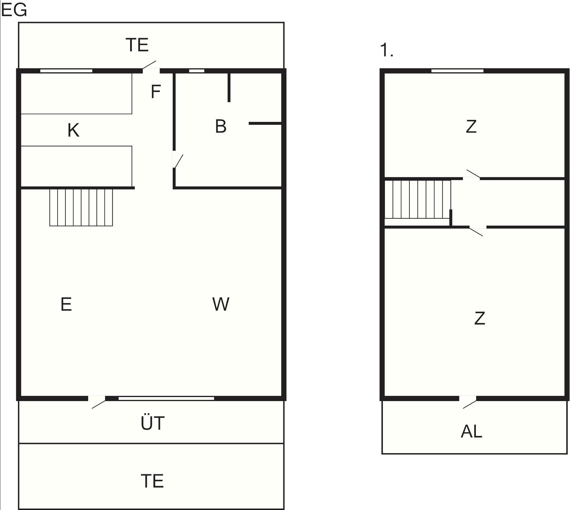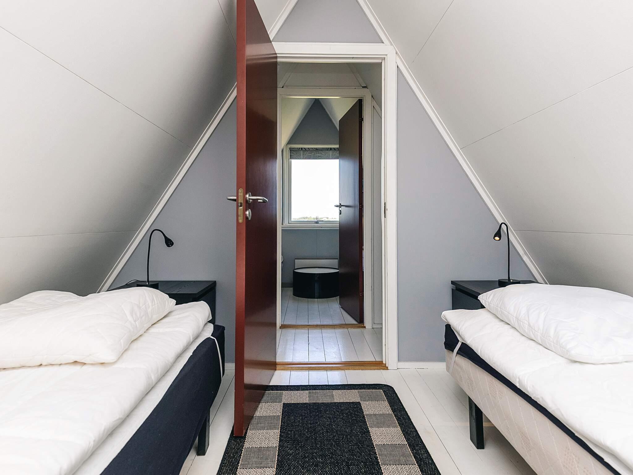 Das Ferienhaus verfügt über zwei Schlafzimmer im ersten Stock mit jeweils zwei Einzelbetten. Die Wohnküche ist offen gestaltet und mit einer Kaffeemaschine, einem Elektroherd mit Backofen, einer Mikrowelle und einem Kühlschrank mit Gefrierfach ausgestattet. Das Wohnzimmer verfügt über einen Fernseher mit Chromecast. Das Badezimmer ist mit Toilette, Waschbecken, Dusche und angenehmer Fußbodenheizung ausgestattet.