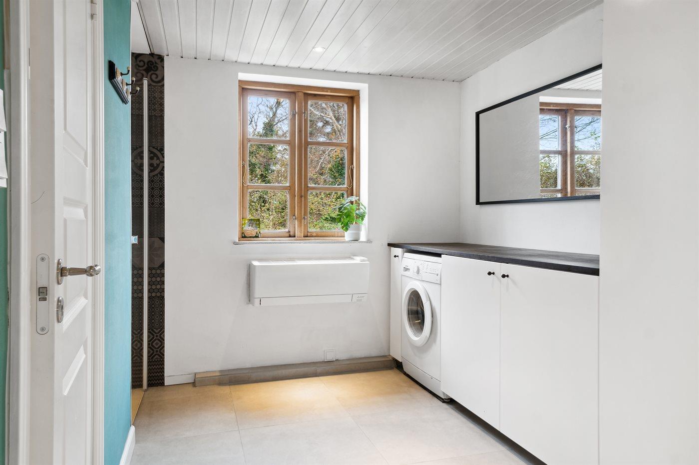 Im Erdgeschoss befindet sich ein Badezimmer mit Dusche, Gästetoilette und Waschmaschine.