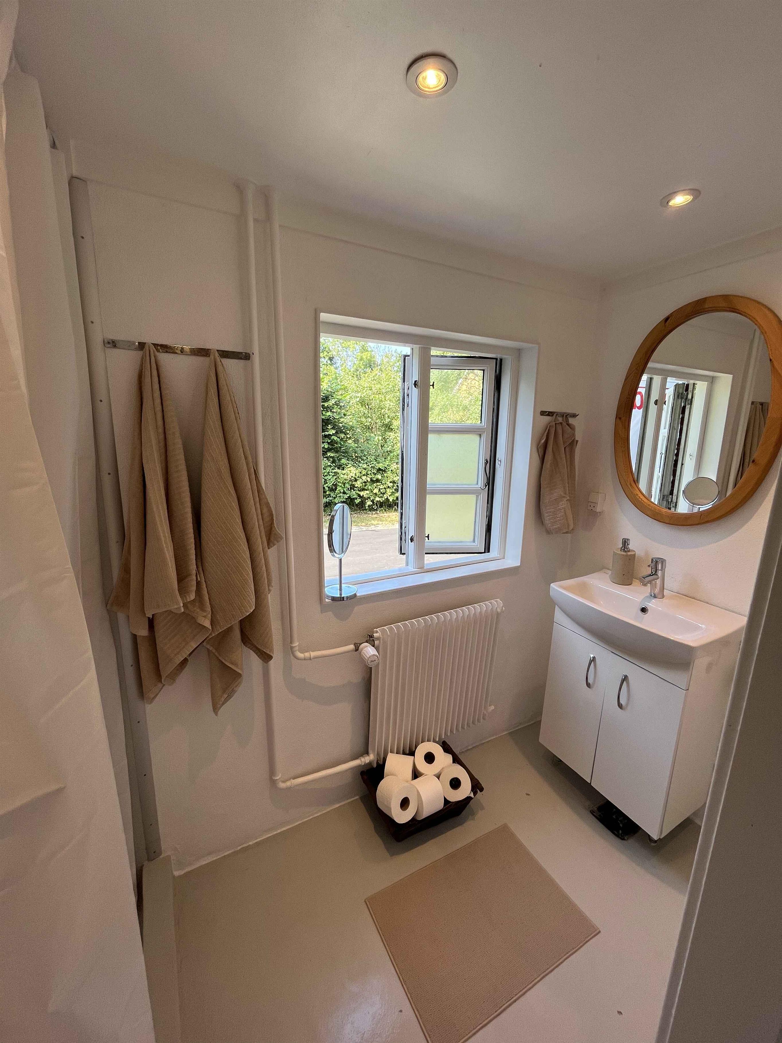 Dieses großzügige Ferienhaus mit 125 m² bietet Platz für die ganze Familie, mit drei Schlafzimmern und insgesamt acht Schlafmöglichkeiten. Es gibt viele Möglichkeiten für gemeinsame Erlebnisse und Entspannung – drinnen wie draußen in der offenen Natur. Die Einrichtung ist vom klassischen Stil dänischer Badehotels inspiriert, mit hellen Räumen, durchdachten Details und einem Fokus auf Komfort. Das Haus verfügt über Internet und eine Gasheizung, die es das ganze Jahr über angenehm macht. Man wohnt hier ruhig und ungestört mit herrlichem Blick über weite Felder. Abends senkt sich die Sonne sanft über die Landschaft, und man hört nur die Geräusche der Natur – kein Verkehr, keine Hektik. Im Haus gibt es viele Bücher, Spielkarten und Brettspiele – perfekt für gemütliche Stunden. Trotz der ruhigen Lage ist es nur eine kurze Autofahrt nach Marielyst und zu den Stränden an Falsters Ostküste. In zehn Minuten ist man am Meer – ideal zum Baden, Spazierengehen oder für ein Eis in der Sonne. Die Umgebung bietet zahlreiche Urlaubserlebnisse für Groß und Klein. Marielyst verfügt über einen langen, kinderfreundlichen Sandstrand, Restaurants, Minigolf und Sommerleben. In der Nähe kann man Rad fahren, Vögel beobachten oder Hofläden besuchen. Gedser Odde – der südlichste Punkt Dänemarks – ist ganz in der Nähe und lädt zu Spaziergängen mit Meerblick ein. Ein ruhiger und großzügiger Rückzugsort – und dennoch nah an allem.
