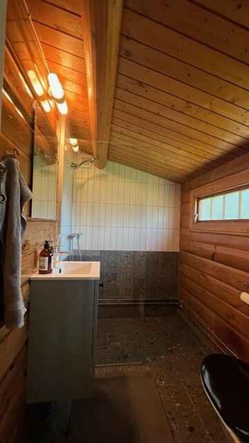 Autentisk norsk bjælkehytte med græs på taget - Her er lagt op til ro, hygge og nærvær. Drømmer I om en ferie væk fra hverdagen og komme helt ned i gear? Et sted der indbyder til ro, nærvær, samtaler, brætspil og spil i haven - Så er dette stedet. Åben stue og spisestue med ny hyggelig brændeovn og udsigt over den lukkede have. Nyere køkken fra 2022, med opvaskemaskine, samt komfur med ovn. Køleskab og fryser. 3 soveværelser: Værelse 1: Dobbeltseng 140x200cm. Værelse 2: Dobbeltseng 140x200cm. Værelse 3: 2 stk enkelt senge 90x200cm. Helt nyt brusebadeværelse med gulvvarme. Nyd solen i haven med havemøbler, grill, hængekøjer og havespil eller overnat i det nye shelter. En unik lille perle, med daglig besøg af egern, spætter, fugleliv og råvildt. Beliggende på 1200m2 hyggelig sommerhusgrund afskærmet med træer og grønt, 8 minutters gå tur / ca. 800m til stranden, der blevet kåret som årets bedste badestrand, samt det natur skønne område Bøtø skoven med vilde heste, råvildt og fuglereservat. Vil i gå eller cykle langs vandet på diget, er der ca. 8 km til Marielyst og masser af ferie byliv og små 6km til Danmarks sydligste punkt Gedser Odde. Hvis en tur over grænsen og handle frister, så er der 4,3km til færgen Gedser-Rostock. Supermarked 4,7km. Nyd solen i haven med havemøbler, grill, hængekøjer og havespil eller tag på oplevelse på resten af Falster eller nu I alligevel er her, så oplev også Lolland. En unik lille perle, med daglig besøg af egern, spætter, fugleliv og råvildt. Udlejes ikke til ungdomsgrupper. Ingen husdyr tilladt, da grunden er åben uden hegn ifht. råvildt. Obs, udlejes ikke til erhversmæssigt brug.