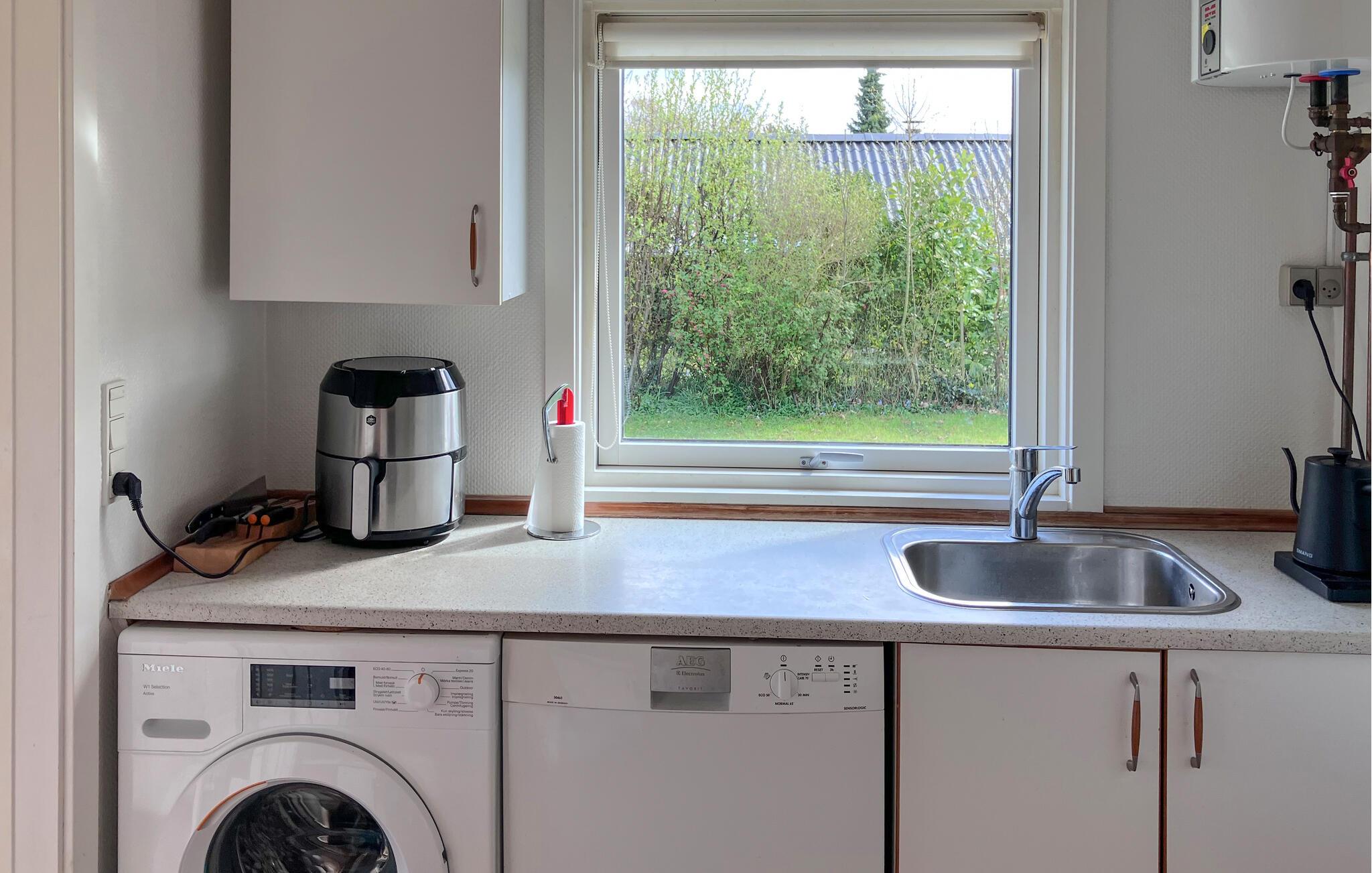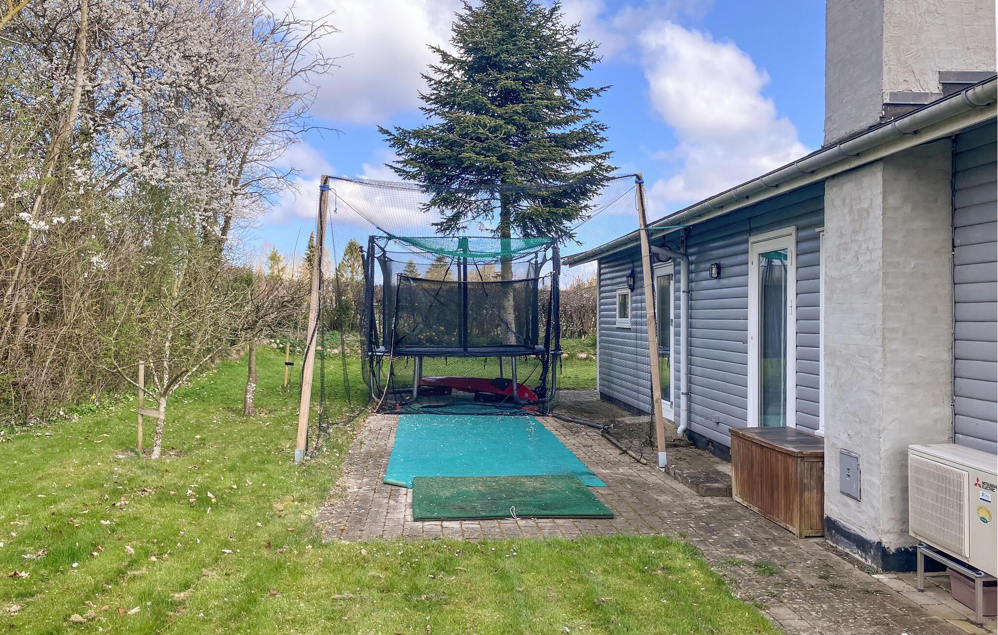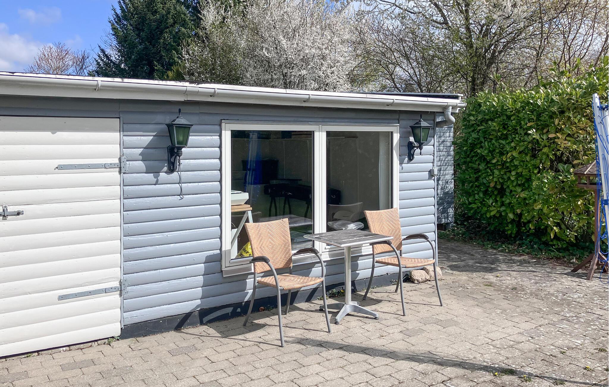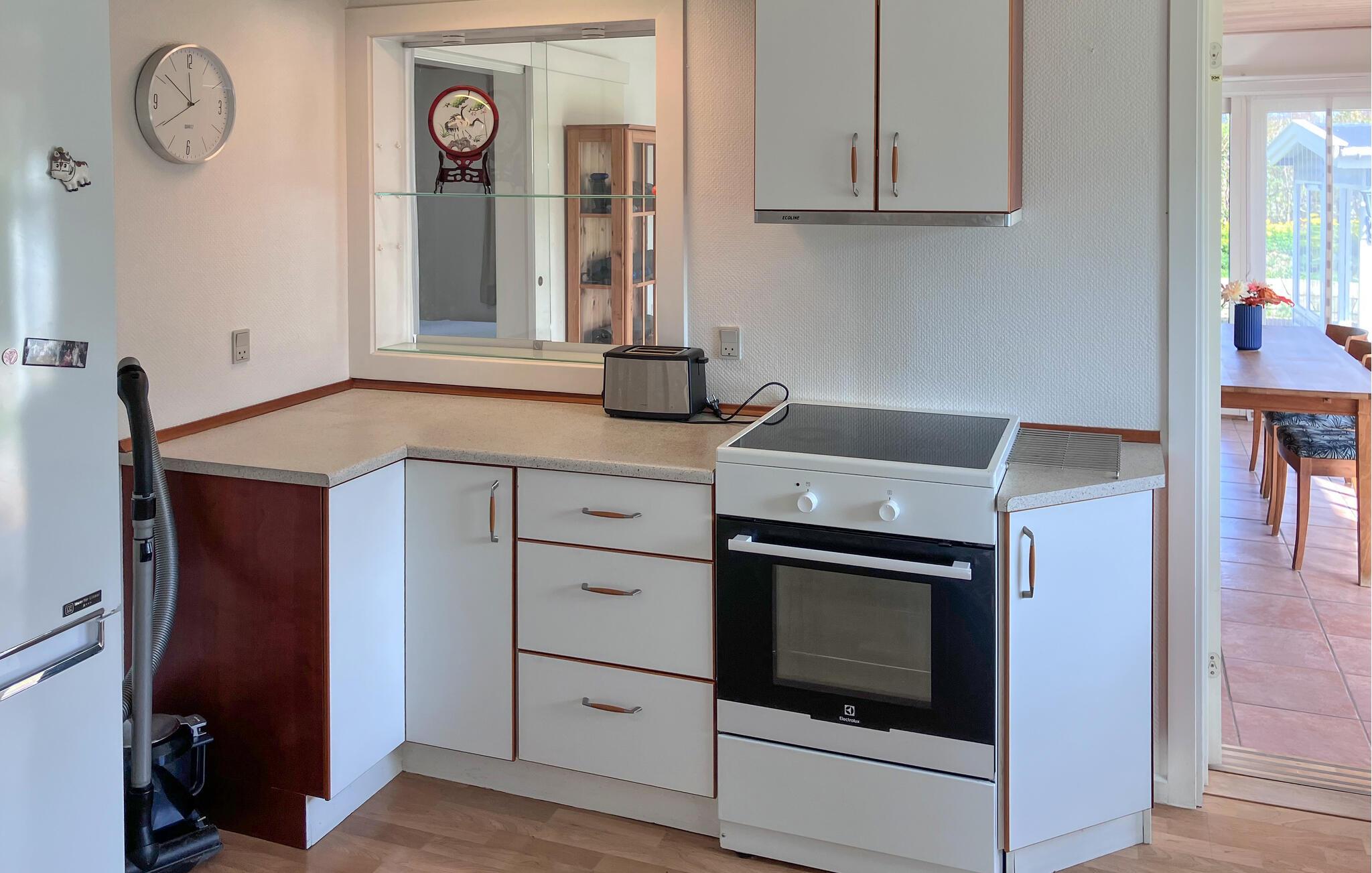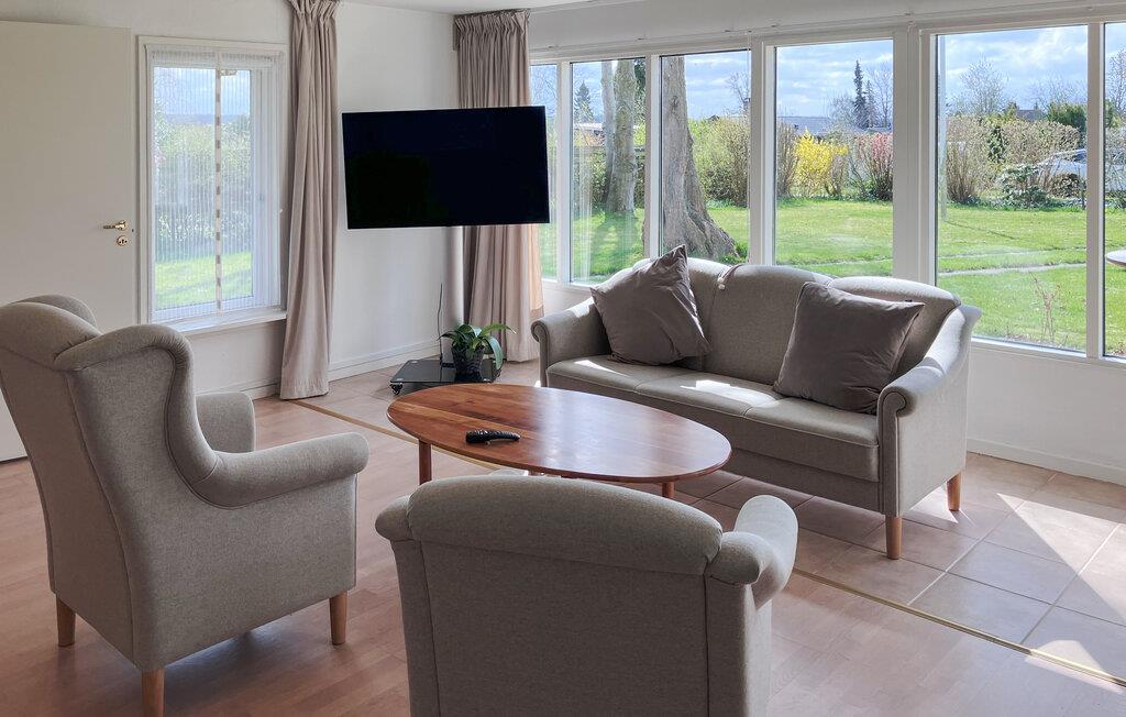 Freuen Sie sich auf entspannte und erlebnisreiche Ferientage in Hornsherred. Hier liegt Ihr gemütliches Sommerhaus, das mit großen Fenstern zur grünen Gartenlandschaft hin einladend und hell gestaltet ist. Die offene Verbindung zum Garten schafft eine angenehme Atmosphäre im Wohnbereich. Genießen Sie Ihre Mahlzeiten im Wohnzimmer, ruhen Sie sich nach Ausflügen in die reizvolle Natur des Fjordlands aus und machen Sie es sich mit einem guten Buch auf dem Bett gemütlich. Tagsüber wird es zur kuscheligen Leseecke.