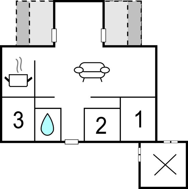 Badezimmer 6m2 (nr. 1) - WC. Warmes und kaltes Wasser. Dusche