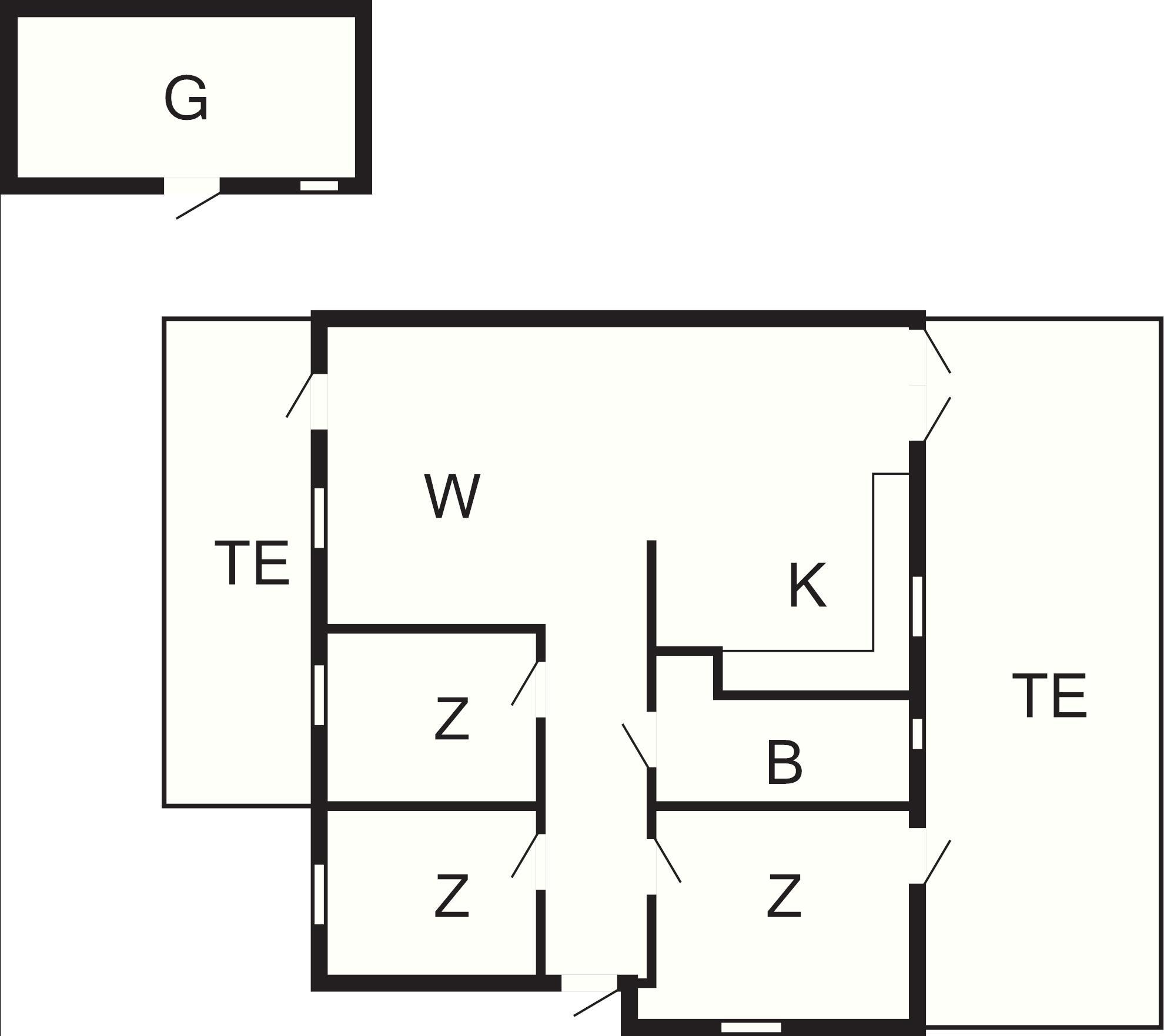 Im Ferienhaus erwartet Sie ein offener Küchen-/Wohnbereich für das Familienleben mit Zugang zu zwei schönen Terrassenflächen mit Gartenmöbeln und Grill. Dort können Sie die Sommertage ungestört auf dem gut abgeschirmten Naturgrundstück genießen.