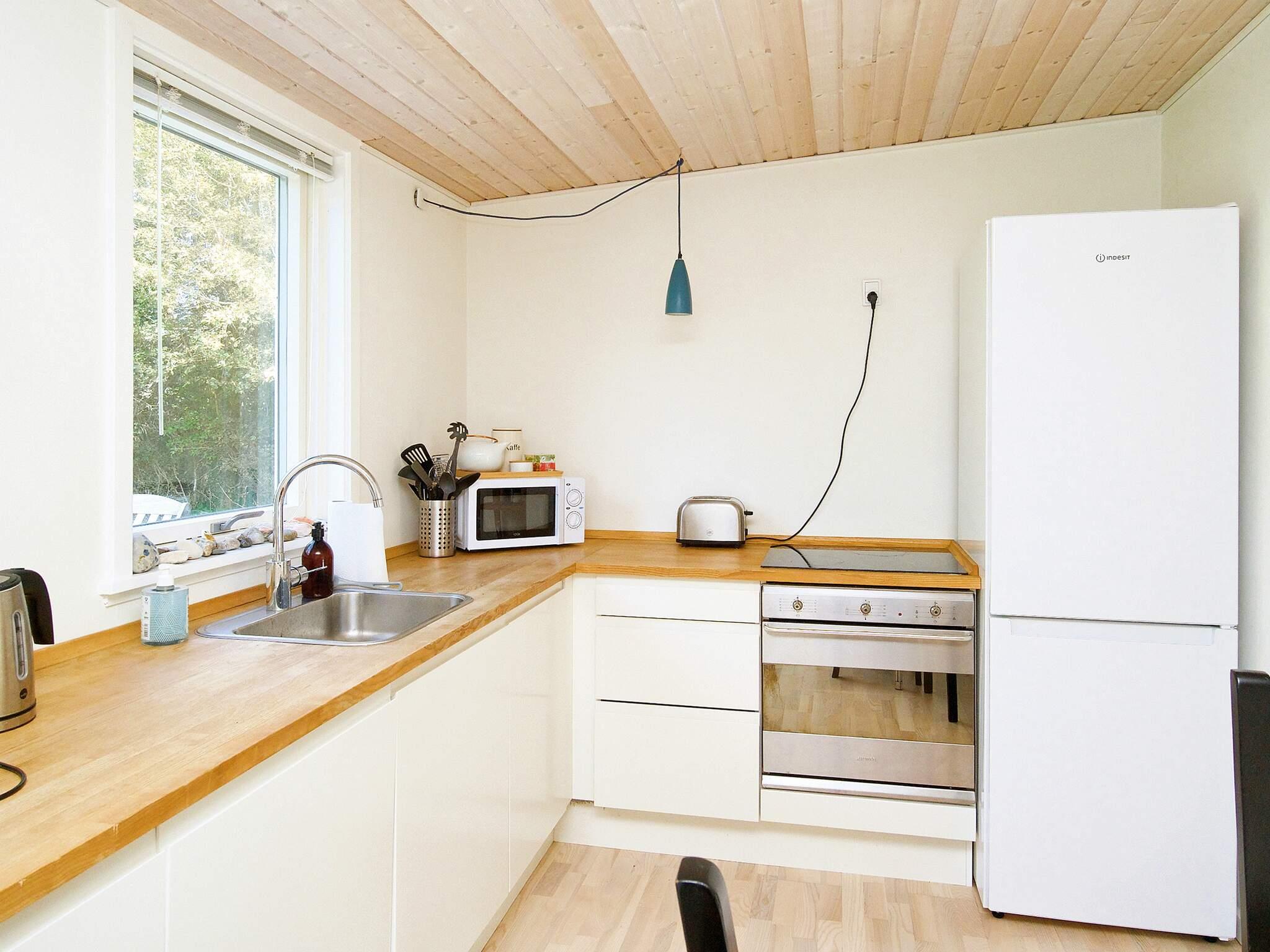 Der helle Wohnbereich des Hauses mit energieeffizienten Luft-Luft-Wärmepumpe, Holzofen, WLAN und TV eingerichtet. Badezimmer mit Dusche, Waschmaschine und angenehmer Fußbodenheizung. Die Küche verfügt u.a. über ein Ceranfeld, eine Mikrowelle, einen Kühl-/Gefrierschrank und einen Geschirrspüler. Es stehen auch drei Schlafzimmer bereit. Sie wohnen hier nur wenige Minuten vom schönen Sandstrand entfernt.