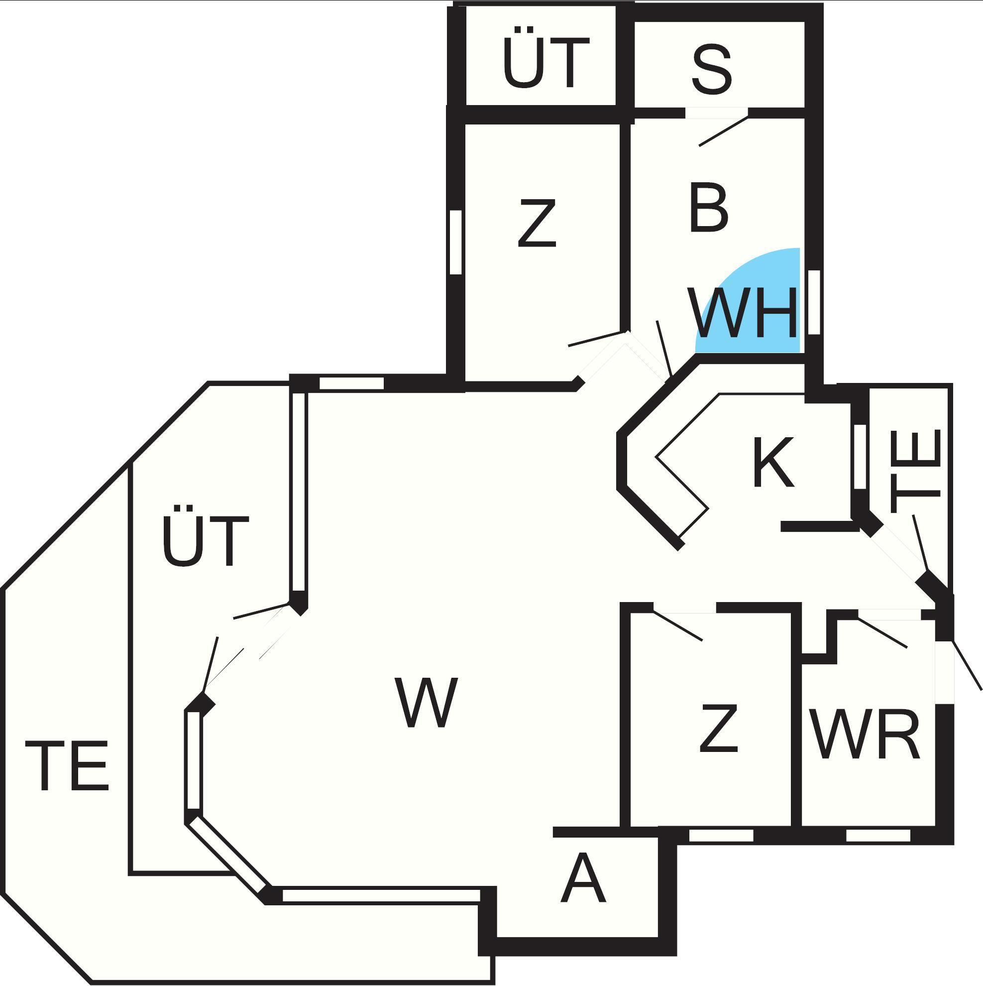 Bad: Waschm., WC, Waschb., Dusche, Fußbodenheiz.