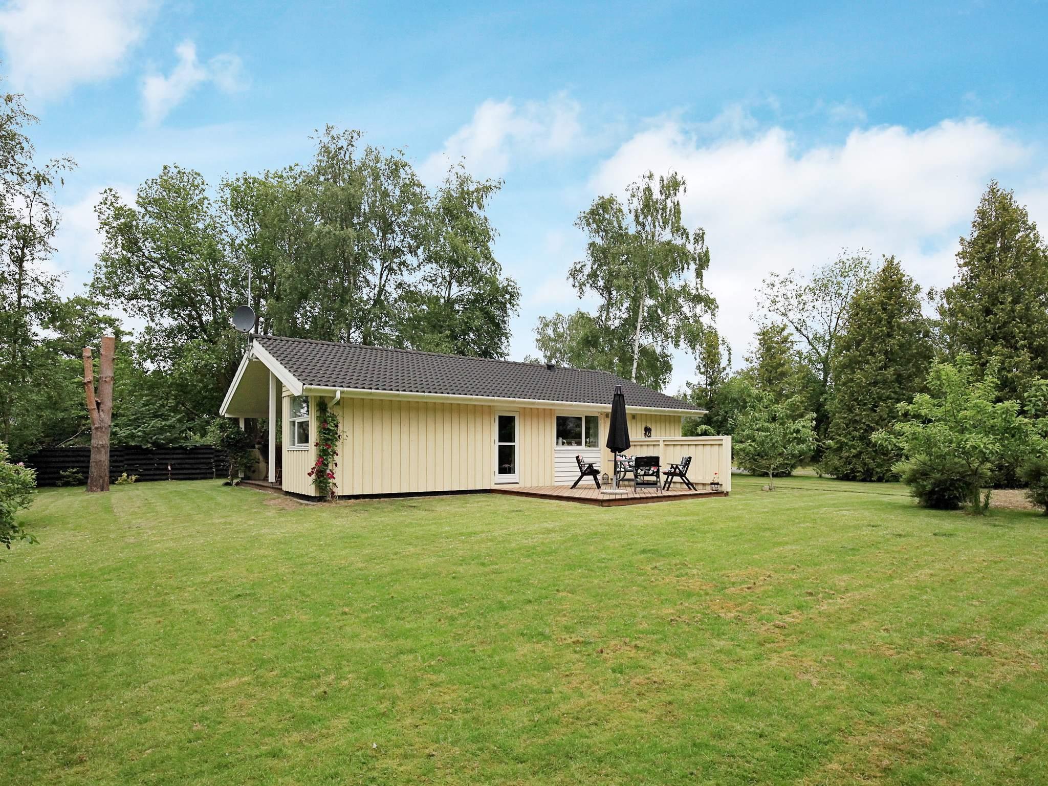Ferienhaus mit wohnlicher Einrichtung. Liegt auf einem großen, schön abgeschirmten Rasengrundstück in einem Feriehausgebiet bei Gilleleje.