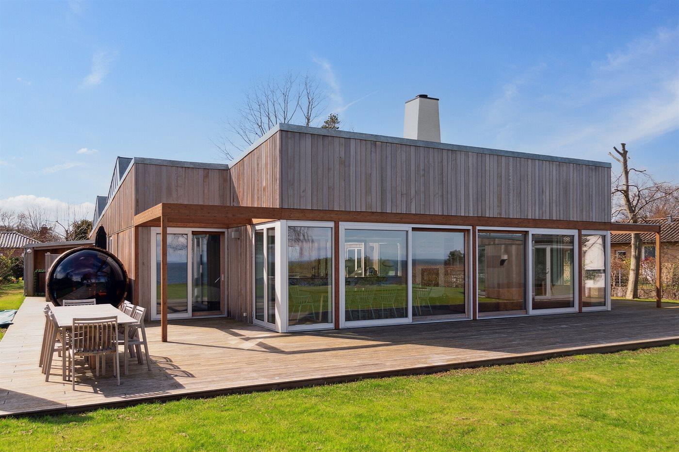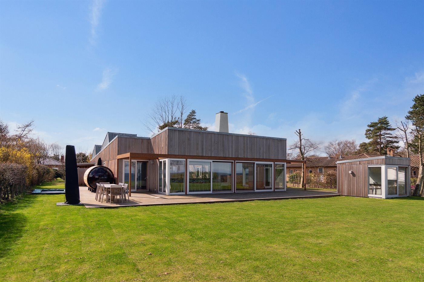 Modernes Ferienhaus mit einzigartigem Meerblick und luxuriösen Annehmlichkeiten in Gilleleje, Dänemark.