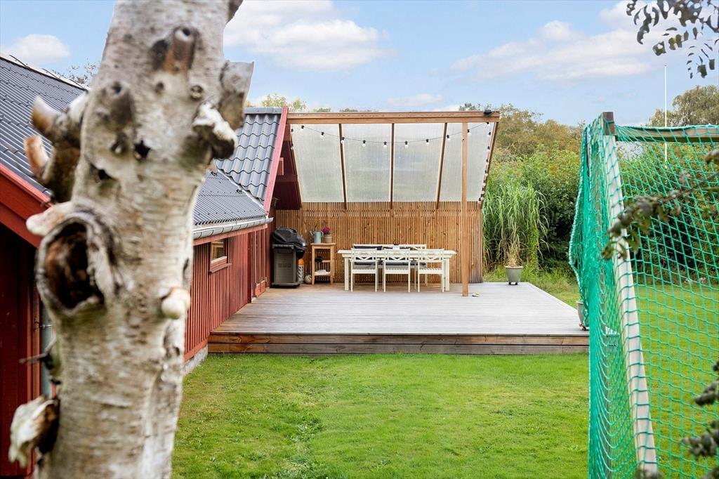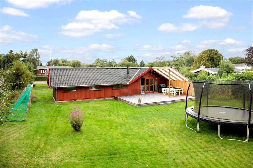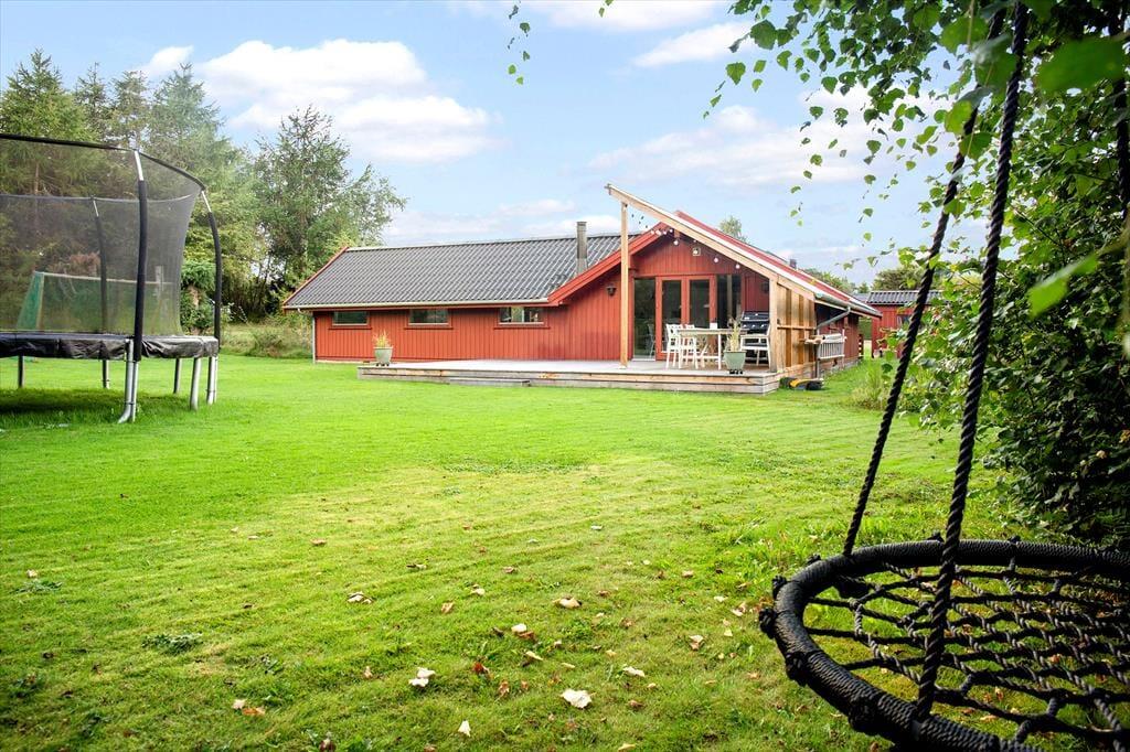 Der Garten rund um das Ferienhaus ist ein wahres Paradies, das sowohl zum Spielen als auch zur Entspannung einlädt. Für die Kinder ist das Trampolin der perfekte Treffpunkt, wo den ganzen Tag gelacht und gehüpft werden kann. Für die Erwachsenen bietet die Terrasse einen wunderbaren Ort, um die Sonne zu genießen, eine Tasse Kaffee zu trinken oder die Familie zu einem Grillabend unter freiem Himmel zu versammeln. Der Garten ist schön angelegt, mit viel Platz für Ballspiele, Spaß und Entspannung, und bietet die perfekte Balance zwischen Privatsphäre und einer naturnahen Umgebung.