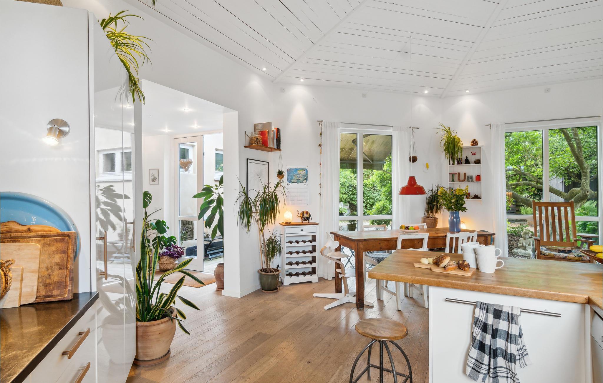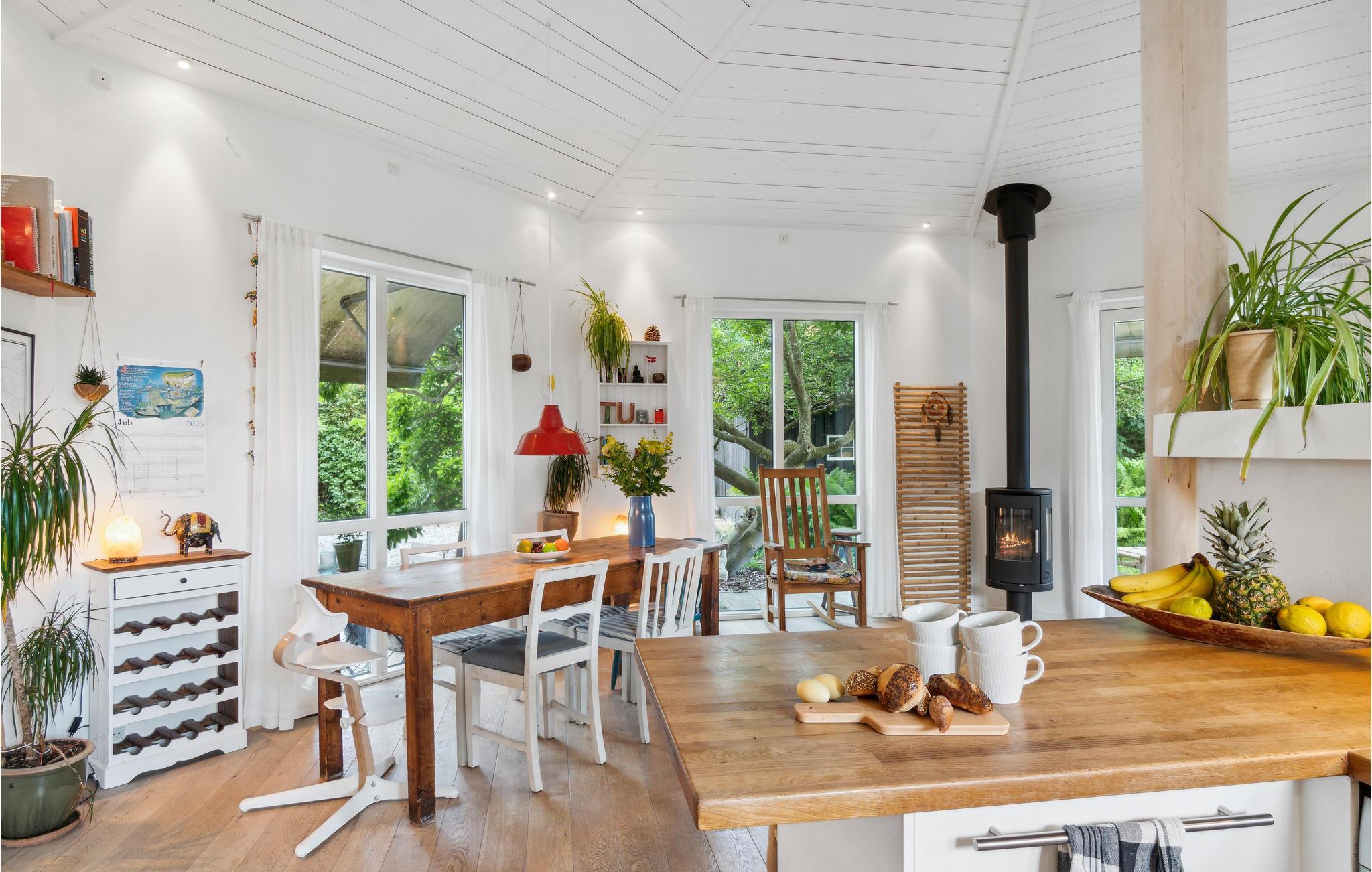 Das einladende Haus bezaubert mit hellen Räumen, der geschmackvollen Einrichtung und originellen Details wie der achteckigen Wohnküche, die dafür sorgen, dass Sie hier in stilvollem Ambiente entspannen. Genießen Sie die gemeinsamen Mahlzeiten mit schönem Blick ins Freie und freuen Sie sich auf gemütliche Abende beim behaglichen Prasseln der Flammen im Kaminofen.