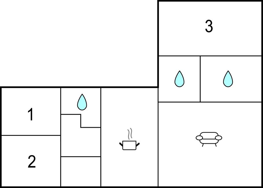 Badezimmer (nr. 1) - WC. Warmes und kaltes Wasser. Dusche