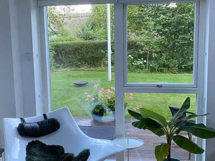Helles, geräumiges Ferienhaus nahe der Küste von Gilleleje. Zwei Schlafzimmer, vier Schlafplätze, große Terrasse und gemütlicher Garten. In der Nähe von Strand, Hafen, Cafés und Natur.