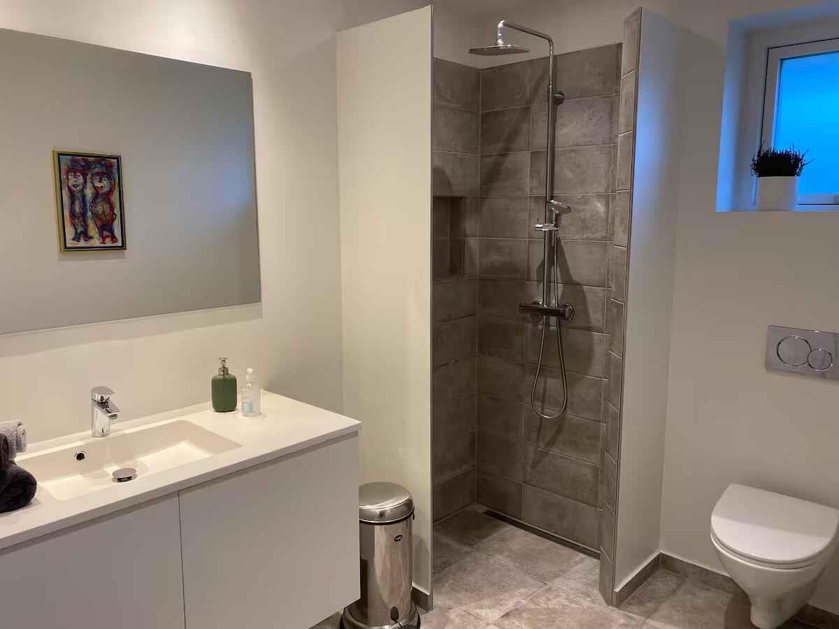 Dieses großzügige Ferienhaus mit 152 m² bietet modernen Komfort und viel Platz für eine Familie oder zwei Paare. Die Einrichtung ist schlicht und funktional, mit einem großen Wohnbereich, in dem Küche, Esszimmer und Wohnzimmer ineinander übergehen. Von hier aus gelangt man auf eine sonnige Terrasse. Die zwei Schlafzimmer bieten insgesamt vier Schlafplätze und sind auf Ruhe und Erholung ausgelegt. Das Badezimmer ist groß und geräumig, und das Haus verfügt über alle Annehmlichkeiten für einen unbeschwerten Aufenthalt – ob zur Entspannung oder für Ausflüge in die Umgebung. Draußen gibt es einen einfachen und gemütlichen Garten, ideal zum Grillen, Spielen oder Entspannen. Die große Terrasse lädt zu ruhigen Morgenstunden mit Kaffee in der Sonne oder zu langen Sommerabenden unter freiem Himmel ein. Nur 500 Meter entfernt liegt die Küste, ideal zum Schwimmen, Spazierengehen oder um den Sonnenuntergang über dem Meer zu genießen. Die Umgebung von Gilleleje bietet gemütliche Cafés, kleine Geschäfte und einen lebhaften Hafen mit frischem Fisch. In der Nähe befinden sich auch Waldwege, Fahrradrouten und kulturelle Sehenswürdigkeiten. Die Kombination aus Meer, Natur und Dorfleben macht die Region perfekt für aktive Ferien oder ruhige Auszeiten – ganz nah am Wasser und inmitten der Natur.