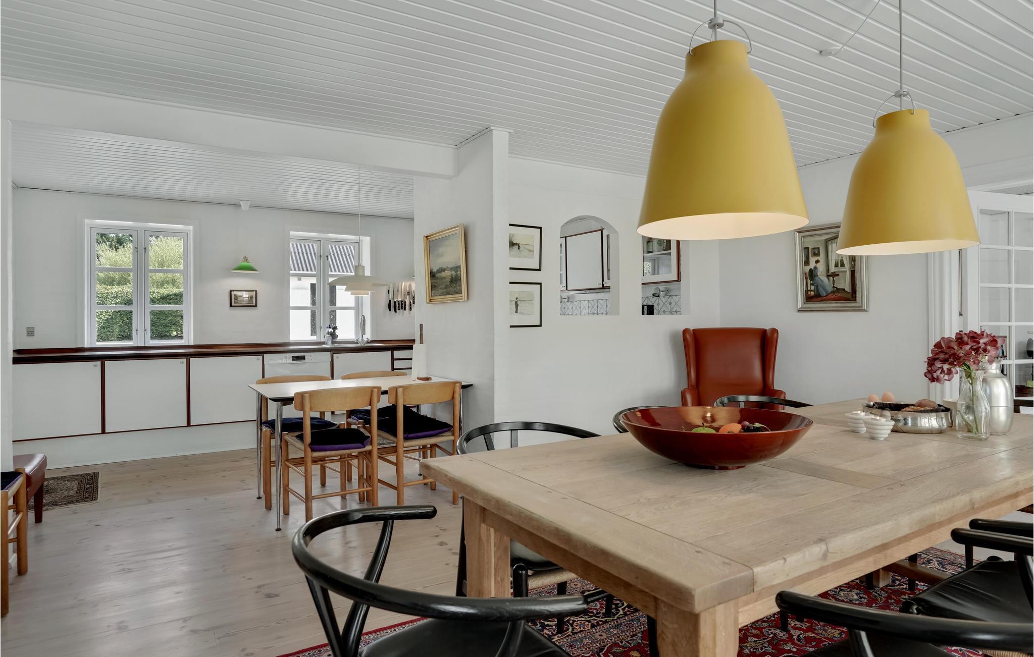 Erleben Sie mit Ihrer Familie oder zusammen mit befreundeten Familien unvergessliche Ferien in diesem geräumigen Ferienhaus in Gjøl. Genießen Sie ruhige Nächte in Ihren großzügigen Schlafzimmern, die Ihnen Privatsphäre versprechen. Ein Schlafzimmer ist ein Durchgangszimmer. Verbringen Sie tagsüber als Familie Zeit in den Gemeinschaftsräumen, denn davon haben Sie eine große Auswahl. Genießen Sie gemeinsam Zeit im hellen Wintergarten, in der großen Küche mit Essbereich oder dem Wohnzimmer im Erdgeschoss. Im 1. Stockwerk finden Sie ein weiteres Wohnzimmer, das Sie für gemütliche Filmabende nutzen können. Im beheizten Wintergarten gibt es auch einen schönen Aktivitätsraum. Spielen Sie doch mehrere Runden Billard und finden Sie Ihren Sieger.