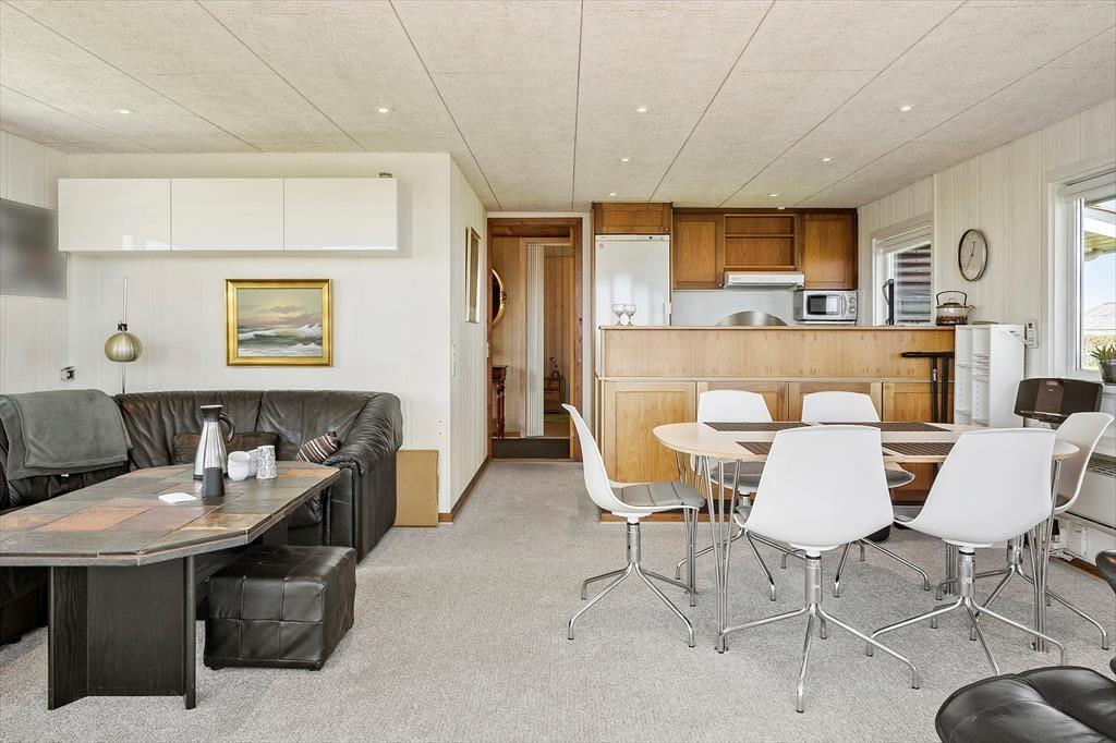 Bellisvej 49 liegt im Herzen des naturschönen Gjellerodde, wo die friedlichen Gewässer des Fjords und die weite Landschaft den Rahmen für viele schöne Erlebnisse bilden. Nur 250 Meter vom Haus entfernt liegt der Strand, wo Kinder Krabben fangen, Muscheln sammeln oder an warmen Tagen ein Bad nehmen können. Das nahegelegene Wegenetz lädt zu Spaziergängen durch das sanft hügelige Gelände ein, und nur wenige Hundert Meter entfernt findest du einen großen, spannenden Naturspielplatz – ein sicheres Highlight für die Kleinsten. Für kleine Einkäufe oder ein Eis liegt ein saisonal geöffnetes Minimarkt in der Nähe. Lemvig mit seinem gemütlichen Hafen und kleinen Geschäften ist nur eine kurze Autofahrt entfernt. Außerdem hast du einfachen Zugang zu schönen Ausflugszielen wie dem Bovbjerg Fyr und der rauen Nordseeküste. In dieser Gegend kannst du die Ruhe spüren – und genau das macht den Urlaub hier so unvergesslich.