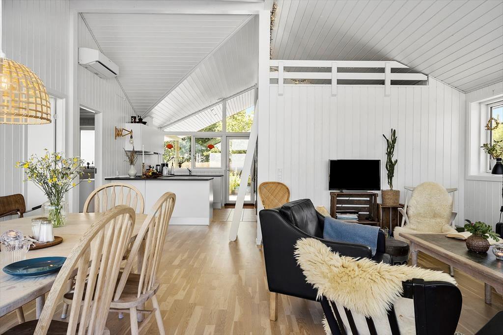Innen empfängt dich eine helle und freundliche Atmosphäre, die sofort zum Durchatmen und Abschalten einlädt. Die Einrichtung ist modern und stilvoll, und mit den offenen Wohnbereichen und den liebevollen Details ist das Ferienhaus ideal für gemeinsame Qualitätszeit. Küche und Wohnzimmer sind offen miteinander verbunden und bilden den natürlichen Treffpunkt, wo ihr kochen, spielen oder einfach das Beisammensein genießen könnt. Durch die großen Fenster strömt viel Licht in den Wohnbereich und verstärkt das Gefühl, der Natur ganz nah zu sein. Und wenn die Kinder eine kleine Auszeit brauchen, ist der Hems der perfekte Rückzugsort – ein gemütlicher Platz zum Spielen oder Ausruhen.
