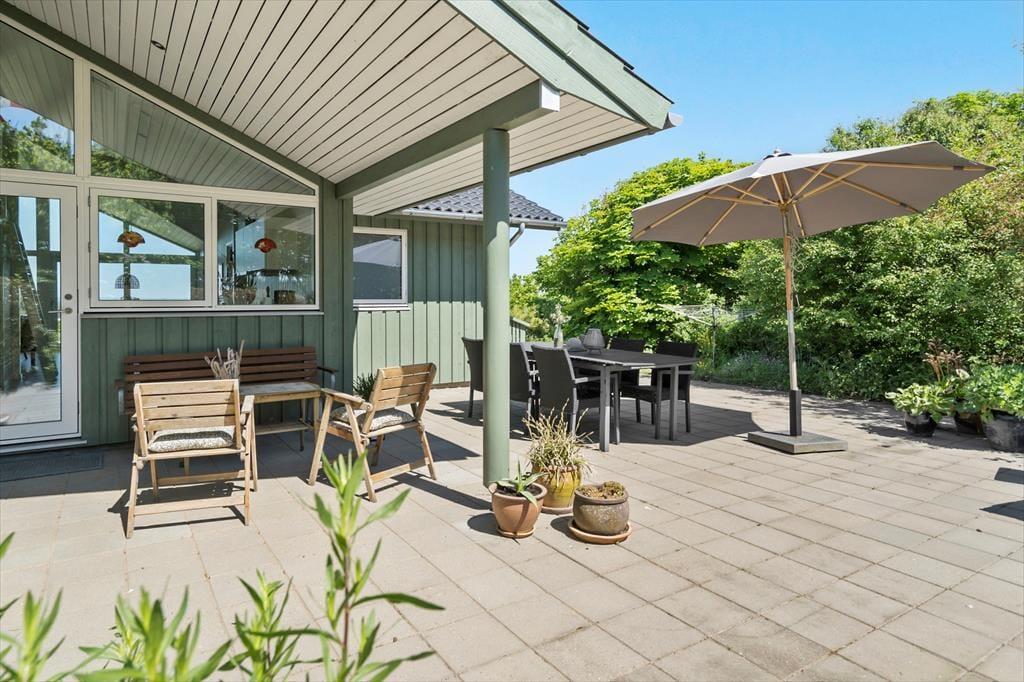 Das Leben im Freien auf Skovstjernevej 2 bietet ein bisschen von allem – von ruhigen Sonnenstunden bis hin zu Spiel und Bewegung. Mehrere sonnige Terrassen laden dazu ein, den Morgenkaffee mit Blick über die Landschaft zu genießen oder den Tag bei einem Abendessen vom Grill ausklingen zu lassen. Rund ums Haus findest du außerdem eine Feuerstelle – perfekt für Stockbrot, Marshmallows und gute Geschichten unter freiem Himmel. Und wenn du mit Kindern reist, wird das Trampolin ganz sicher zum Highlight – hier kann nach Herzenslust gesprungen werden, während die Erwachsenen sich in den Gartenmöbeln entspannen. Der Garten und die umliegende Natur bieten reichlich Gelegenheit für Erholung und Spiel im Freien, und dank der erhöhten Lage genießt du den ganzen Tag über Licht und frische Luft.