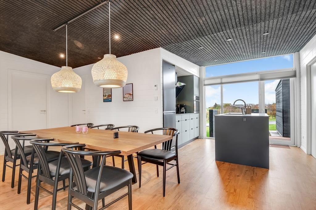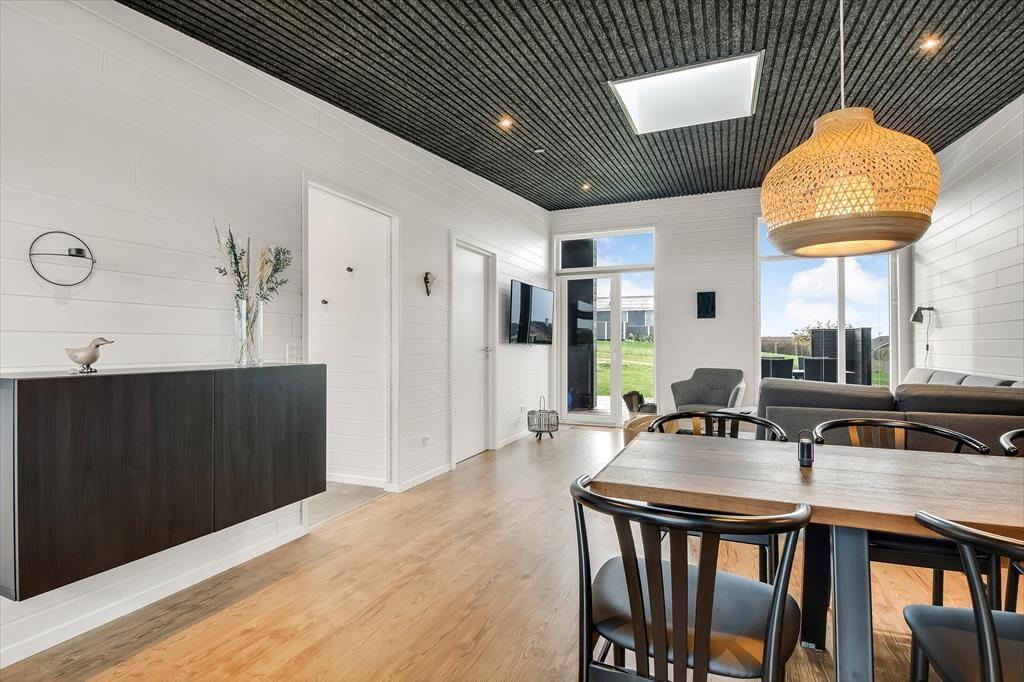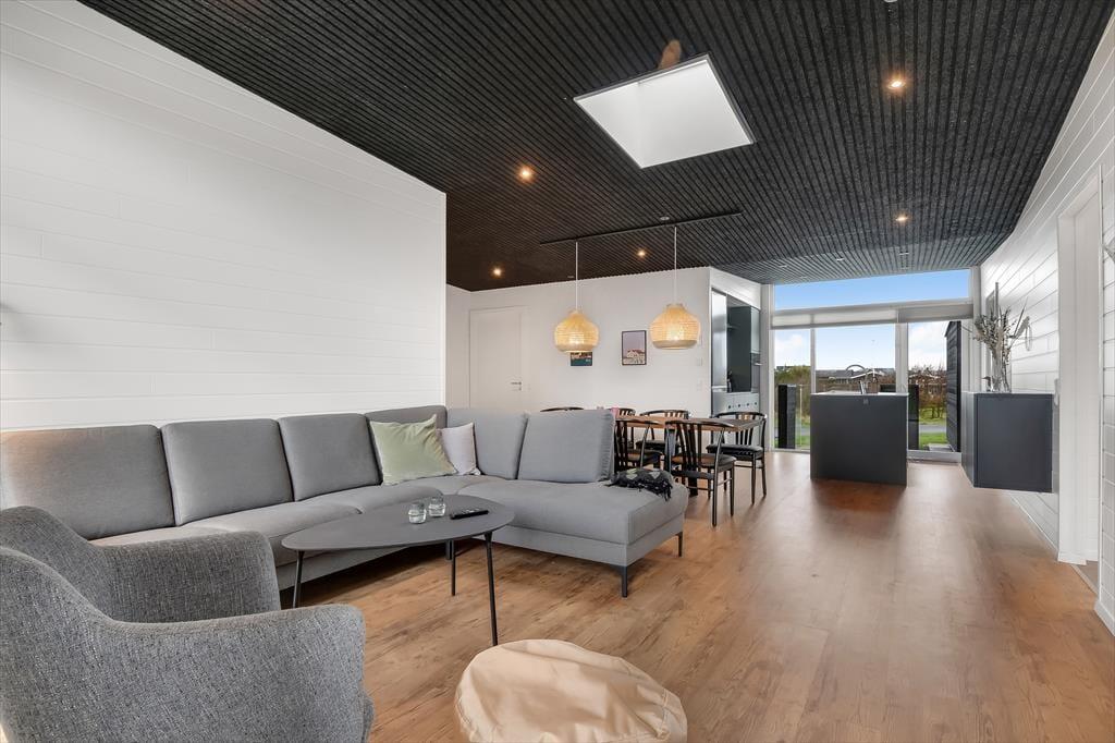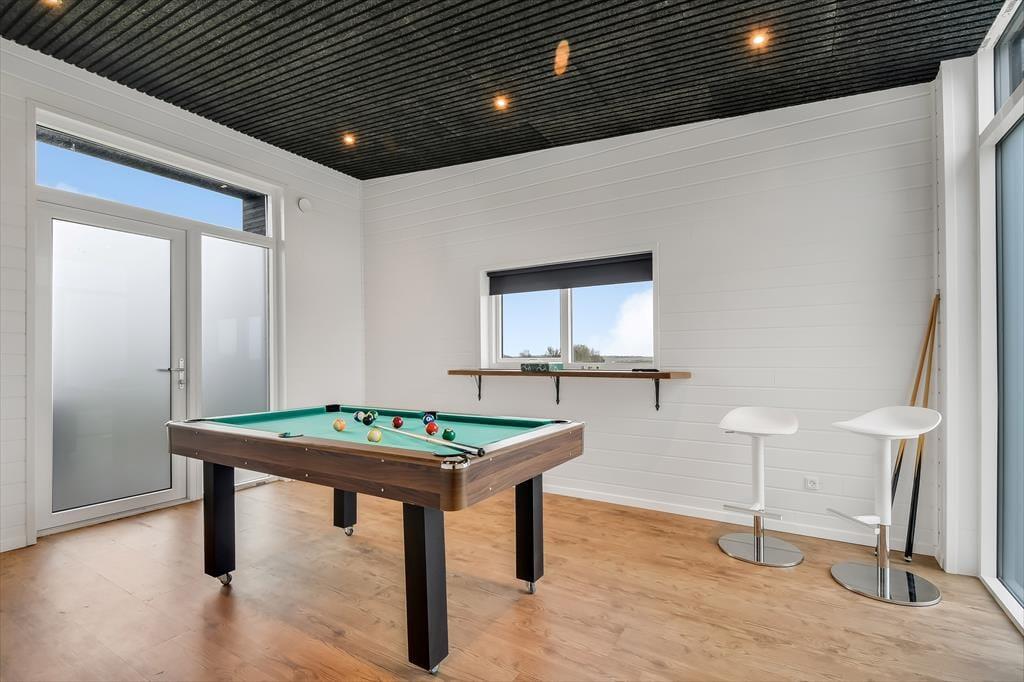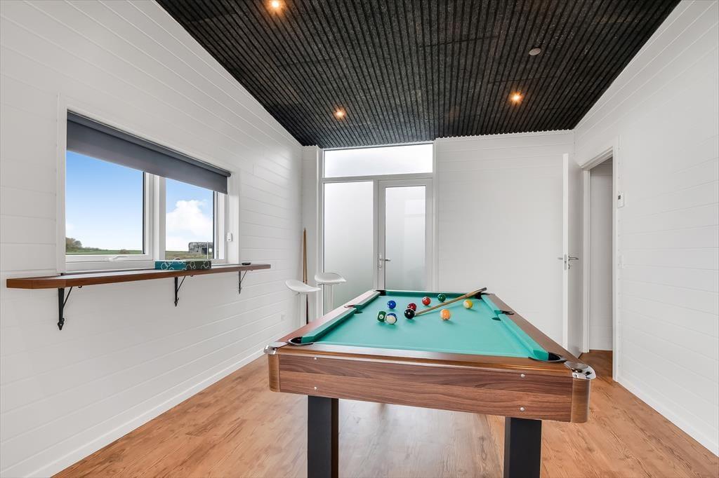 Schon beim Betreten des Ferienhauses in der Violvej 8 spürst du die moderne und freundliche Atmosphäre, die sich durch die gesamte Einrichtung zieht. Hohe Decken, viel Tageslicht und ein offener Wohnbereich laden dazu ein, gemeinsam Zeit zu verbringen – sei es beim Kochen im durchdachten Küchenbereich oder beim Essen und Erzählen am Esstisch. Der Stil ist nordisch und einladend, mit vielen durchdachten Details, die das Haus das ganze Jahr über zu einem gemütlichen und funktionalen Rückzugsort machen. Und wenn das Wetter eher zu Aktivitäten im Haus einlädt, ist das Aktivitätszimmer der perfekte Ort für kleine Wettbewerbe mit Familie oder Freunden bei Billard und Dart. So vergeht die Zeit im Nu – besonders an Tagen, an denen der Wind über den Fjord zieht und ihr es euch drinnen gemütlich macht.