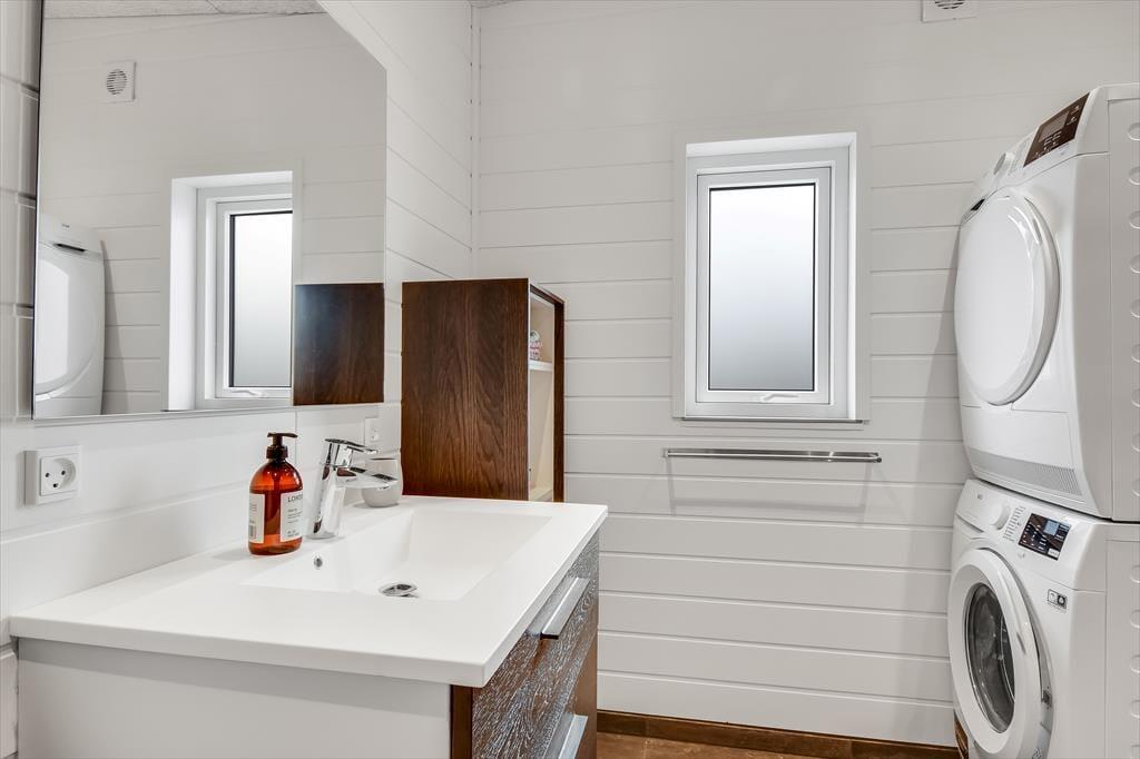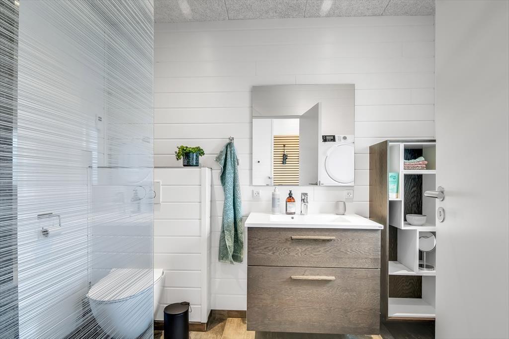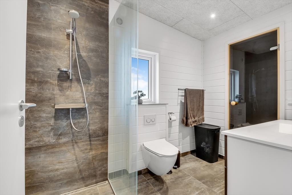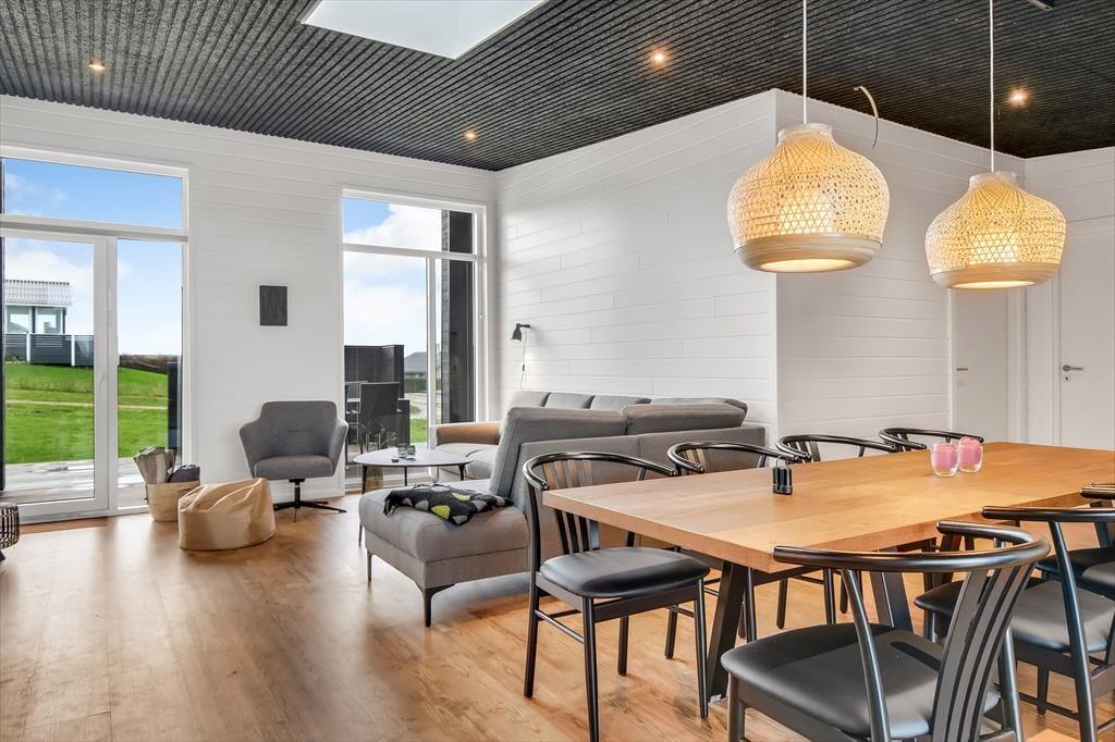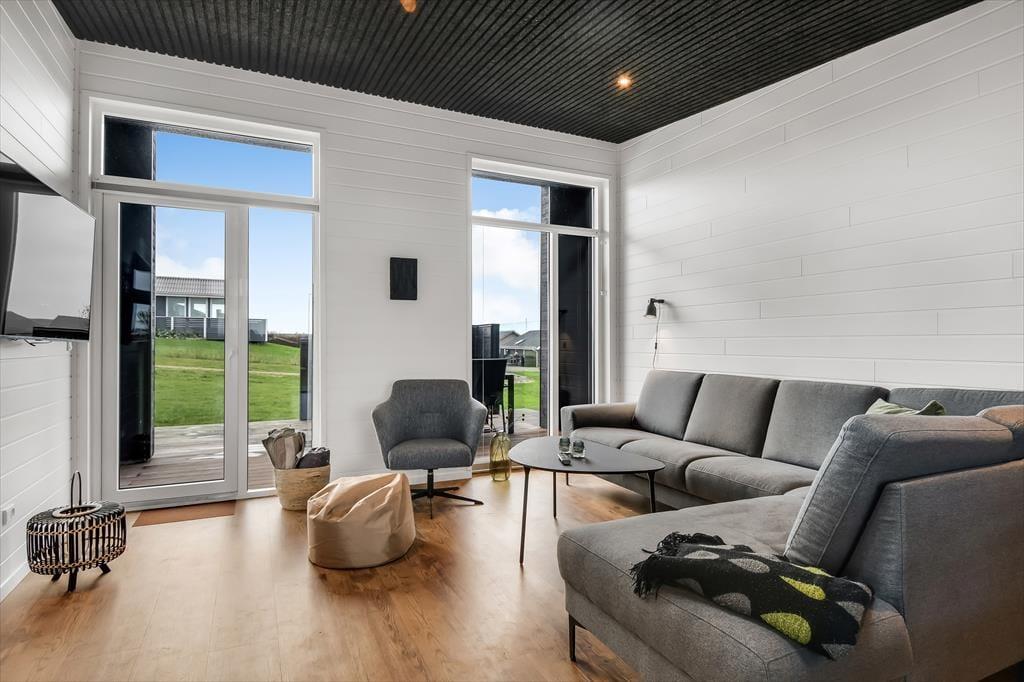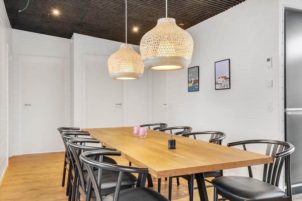 Schon beim Betreten des Ferienhauses in der Violvej 8 spürst du die moderne und freundliche Atmosphäre, die sich durch die gesamte Einrichtung zieht. Hohe Decken, viel Tageslicht und ein offener Wohnbereich laden dazu ein, gemeinsam Zeit zu verbringen – sei es beim Kochen im durchdachten Küchenbereich oder beim Essen und Erzählen am Esstisch. Der Stil ist nordisch und einladend, mit vielen durchdachten Details, die das Haus das ganze Jahr über zu einem gemütlichen und funktionalen Rückzugsort machen. Und wenn das Wetter eher zu Aktivitäten im Haus einlädt, ist das Aktivitätszimmer der perfekte Ort für kleine Wettbewerbe mit Familie oder Freunden bei Billard und Dart. So vergeht die Zeit im Nu – besonders an Tagen, an denen der Wind über den Fjord zieht und ihr es euch drinnen gemütlich macht.
