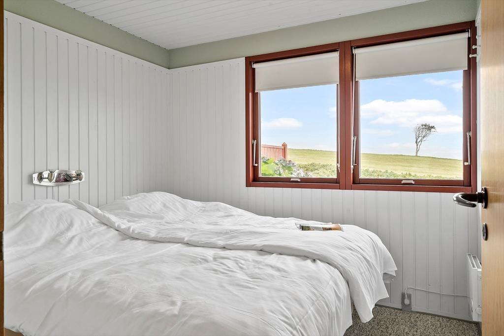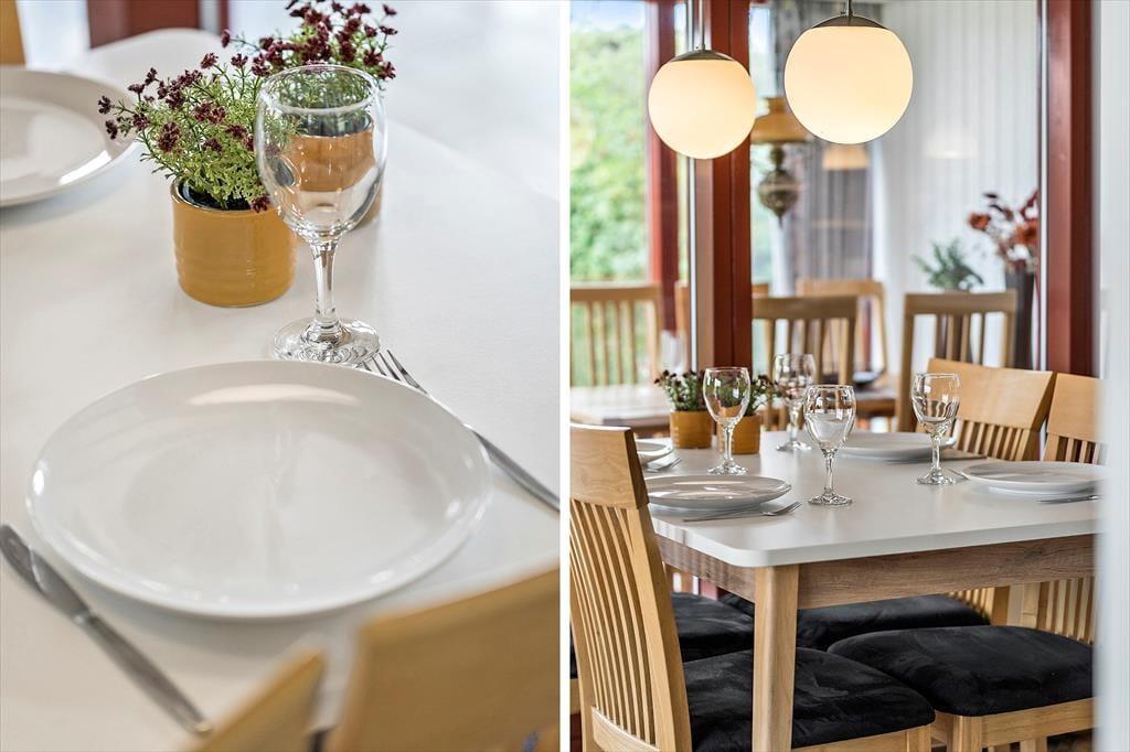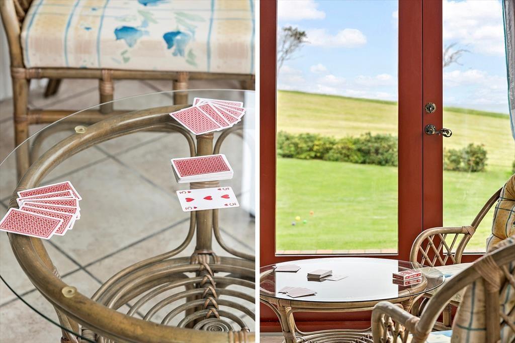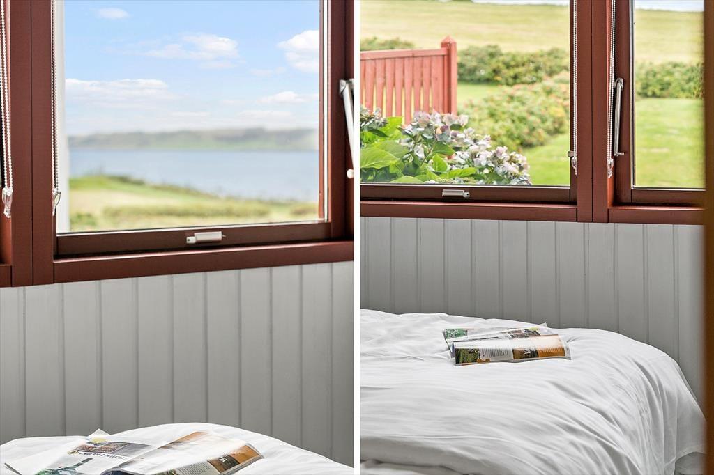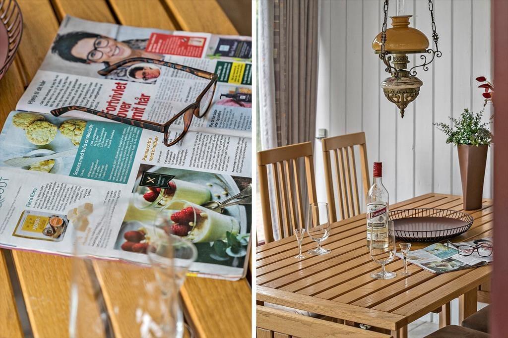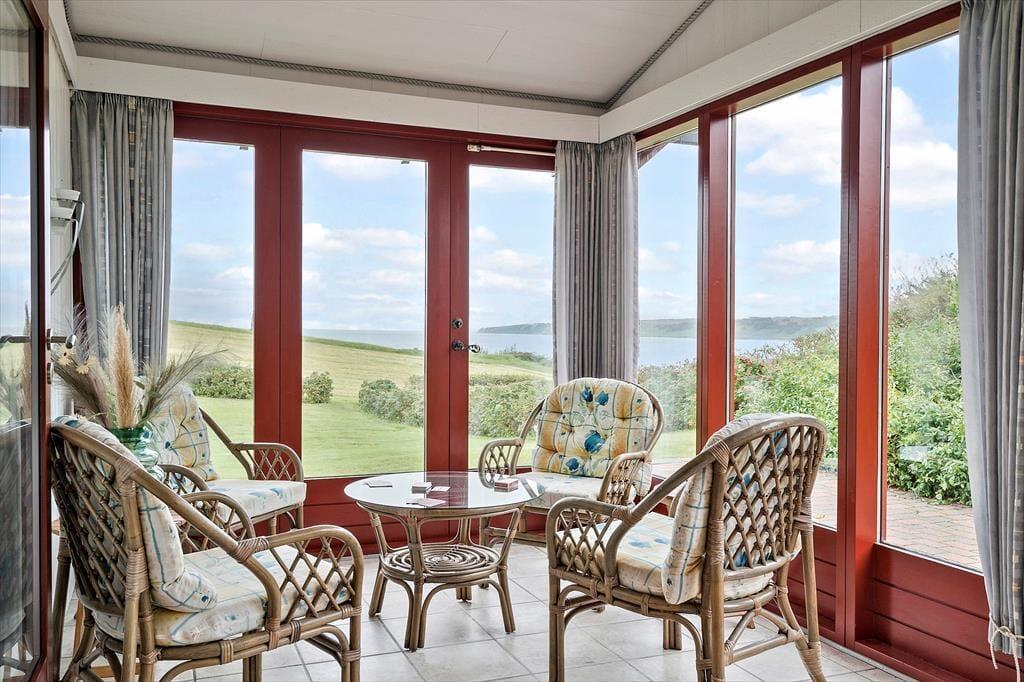 Wenn du das Ferienhaus betrittst, wirst du von einer hellen und freundlichen Einrichtung empfangen, die eine klassische Urlaubsatmosphäre ausstrahlt. Das Haus ist praktisch und schlicht möbliert, und im offenen Küchen- und Wohnbereich lässt es sich wunderbar gemeinsam Zeit verbringen – ob beim Kochen, Kartenspielen oder beim gemütlichen Filmabend. Ein besonderes Highlight ist der einladende Wintergarten mit wunderschönem Blick über die Umgebung und den Fjord im Hintergrund. Hier kannst du geschützt und warm sitzen, während du das Licht und die Natur genießt – vielleicht bei einer Tasse Kaffee oder einem Glas Wein in netter Gesellschaft. Ein perfekter Rückzugsort – bei jedem Wetter und zu jeder Jahreszeit.