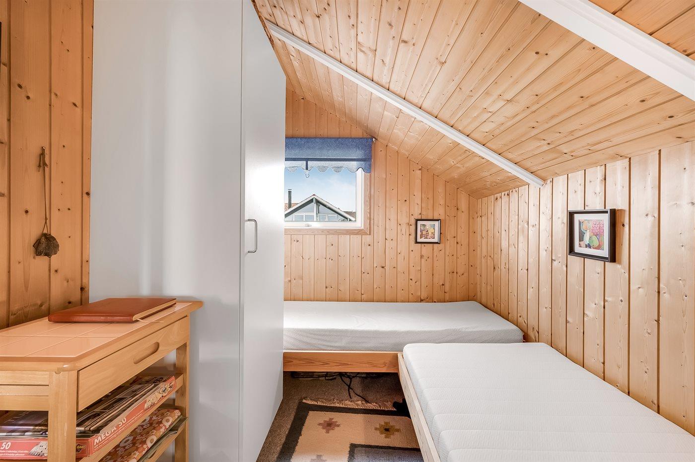 Die Schlafplätze verteilen sich auf 2 Schlafräume. 2 Schlafplätze in einem Doppelbett. 2 Schlafplätze in Einzelbetten.