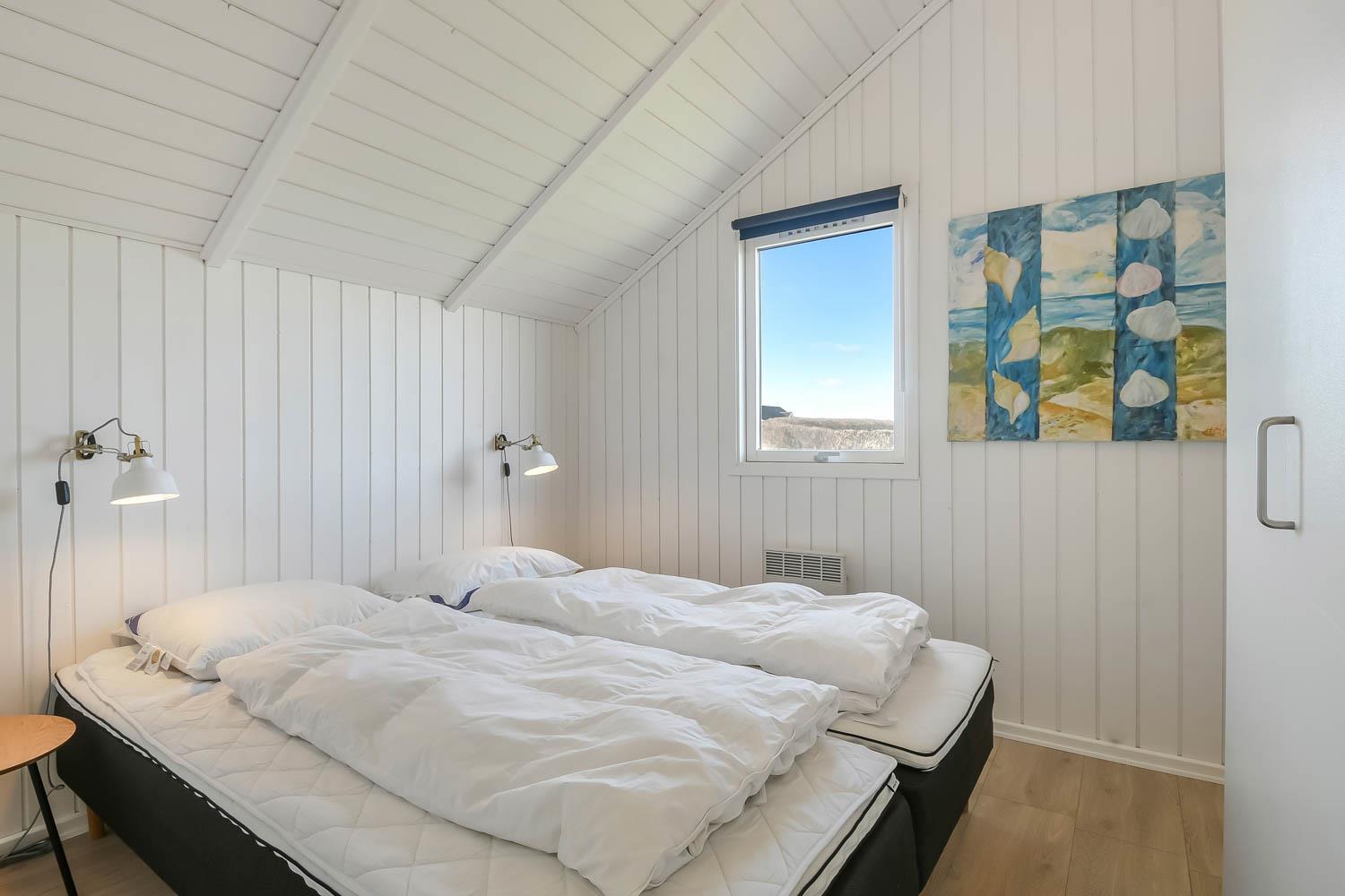 Ferienhaus auf etwa 72 m2 im Jahr 1998 erbaut und teilweise in 2022 renoviert. Kombinierter Wohn-/Essraum mit offenen Decken und grossen Fensterpartien mit schönem Blick zum Limfjord. Wohnraum mit gemütlicher Möblierung, Smart-TV mit dänischen und deutschen Programmen und der Möglichkeit für Streaming von TV / Radio / Apps über Chromcast, wofür Sie selber ein Abonnement haben. Dicht an der Küche steht der Esstisch. Die Küche ist mit E-Herd, Abzugshaube, Geschirrspüler und Kühlschrank mit Gefrierfach. Ausserdem gibt es 2 Schlafräume: 1DB + 1DB mit neuen Böden. Badezimmer: Toilette, Waschbecken, Dusche und Fliesenboden mit Fussbodenheizung. Rauchen ist nicht erlaubt. Max. 2 Haustiere sind erlaubt.