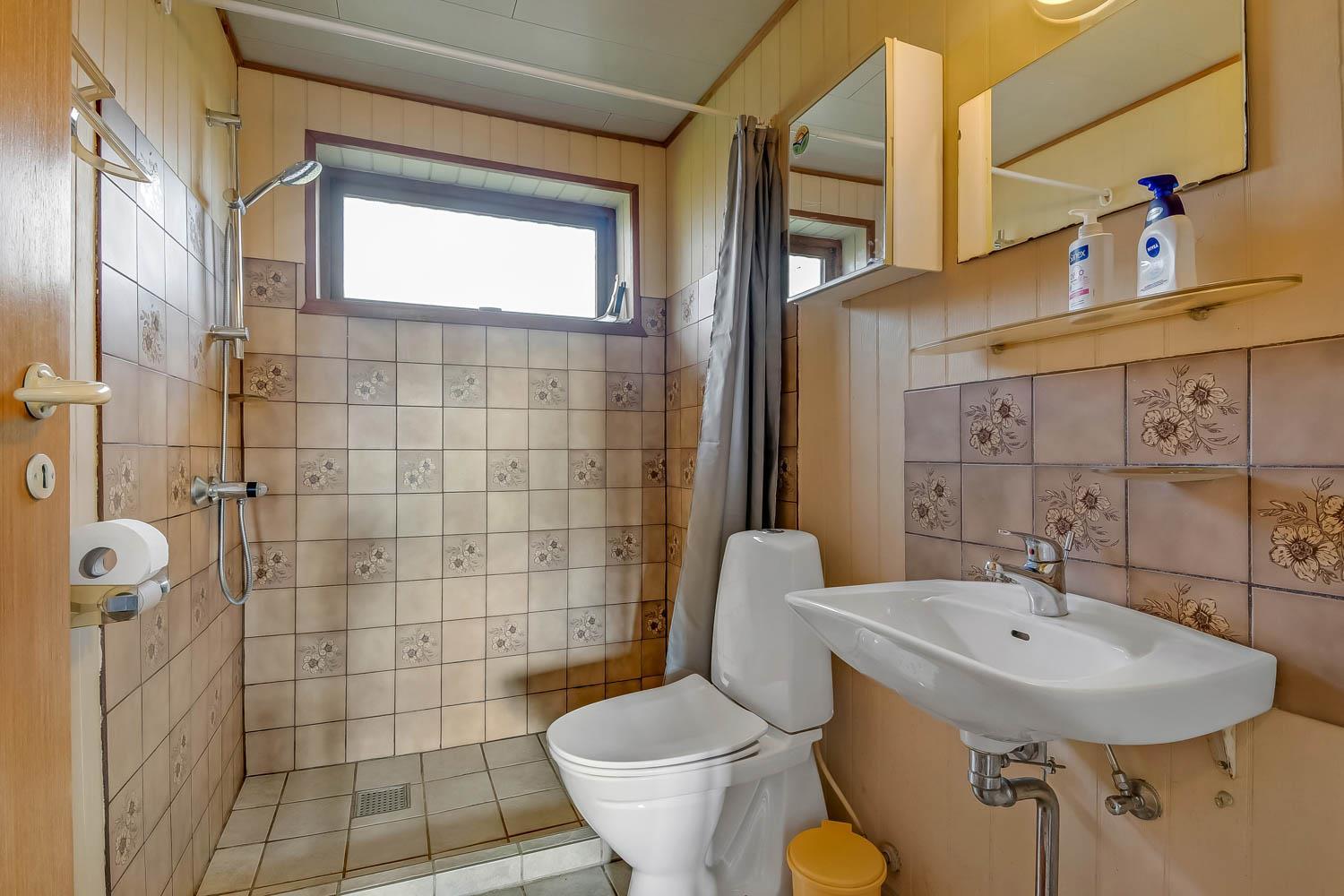 Es stehen drei Schlafzimmer zur Verfügung: zwei mit Doppelbetten und eines mit einem Einzelbett. Das Badezimmer ist mit WC, Waschbecken und Dusche ausgestattet. Außerdem sind eine Waschmaschine und ein Trockner vorhanden.