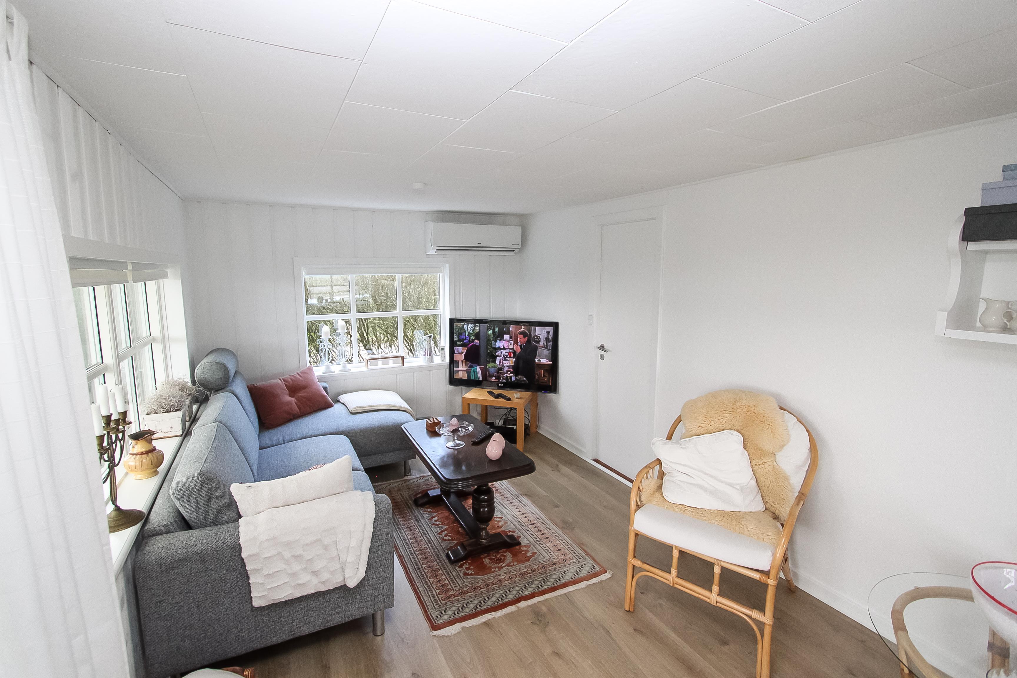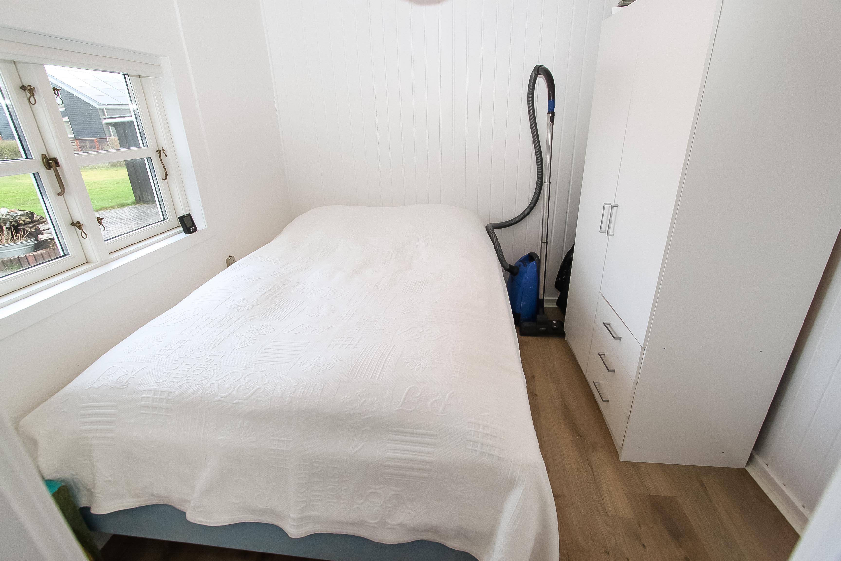 Holzferienhaus mir etwa 49 m². Das Haus ist gemütlich eingerichtet mit z.B. schönen Polstermöbeln und praktischem Holzboden im ganzen Haus. 1 Schlafraum: 1DB. Wohnraum mit TV mit dänischen und deutschen Programmen, DVD-Spieler, Bluetooth Lautsprecher für streaming von Musik und Radioprogrammen. Gemütliche Küchenecke mit Herd mit Cerankochfeld, Abzugshaube, eingebautem Ofen und Kühlschrank mit Gefrierfach. Von dem kombinierten Wohnraum/Küchenecke können Sie den schönen Blick über das Wasser geniessen. Kleines Badezimmer mit Toilette, Dusche und Waschbecken. Rauchen ist nicht gestattet. Haustiere sind nicht erlaubt. Ein sehr gemütliches richtiges Ferienhaus in fantastischer Lage.