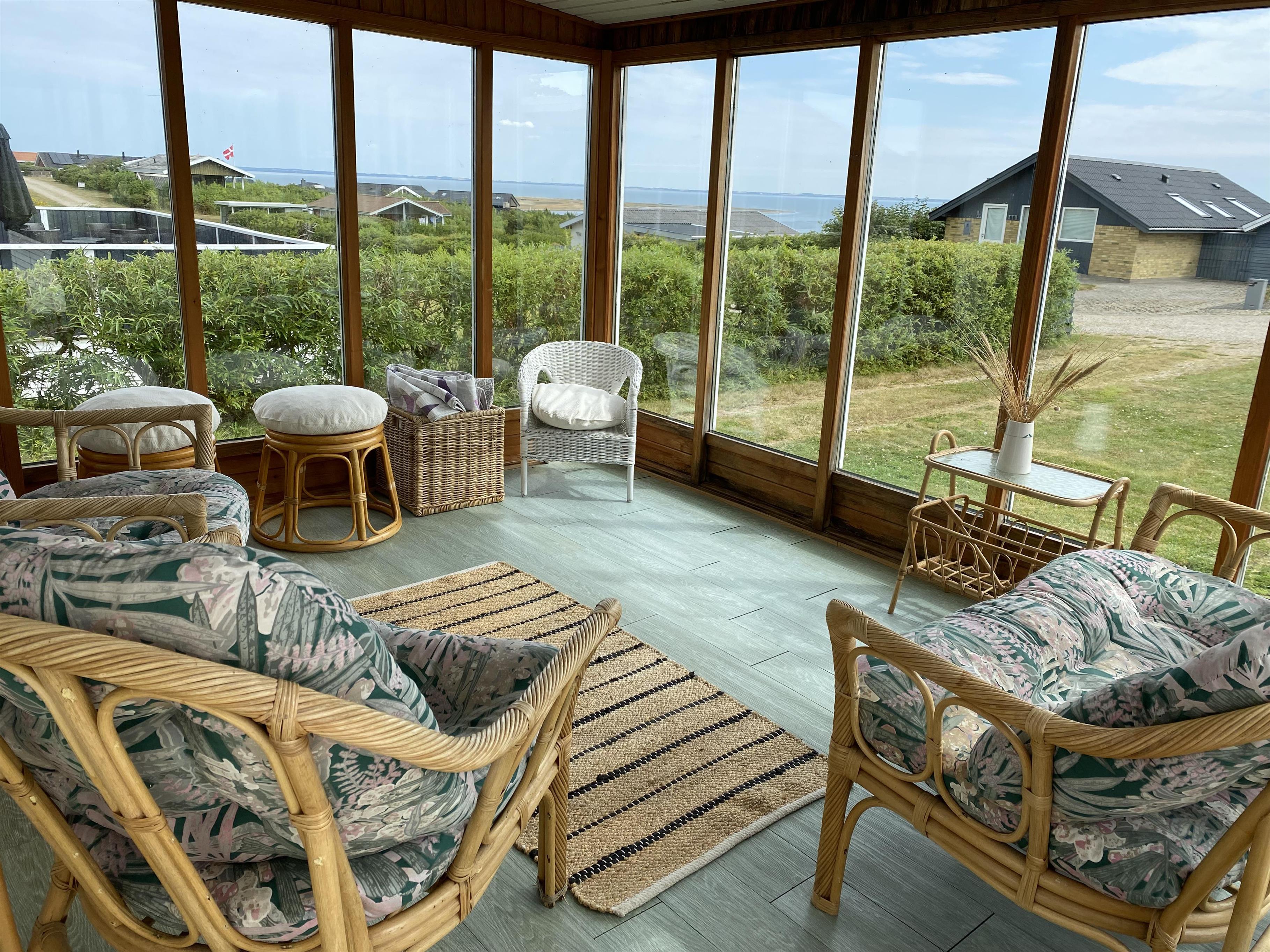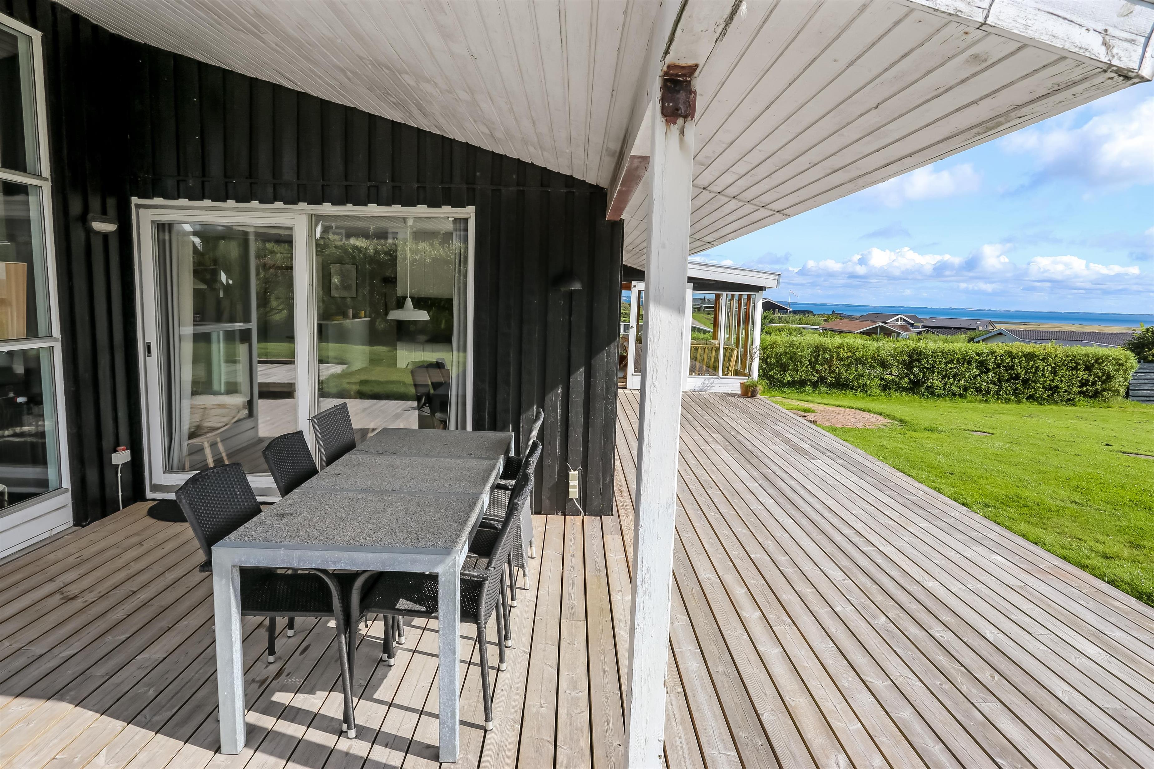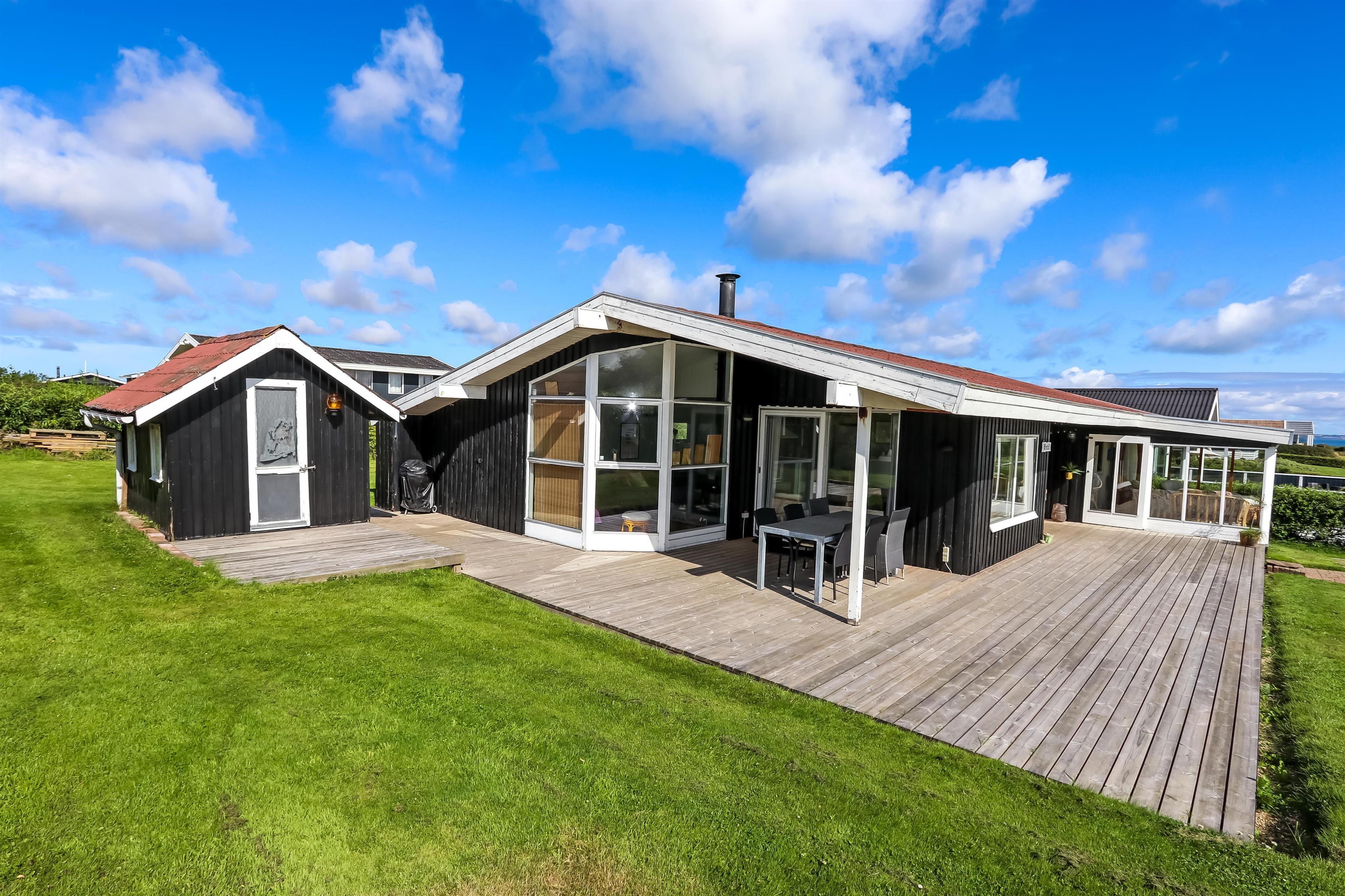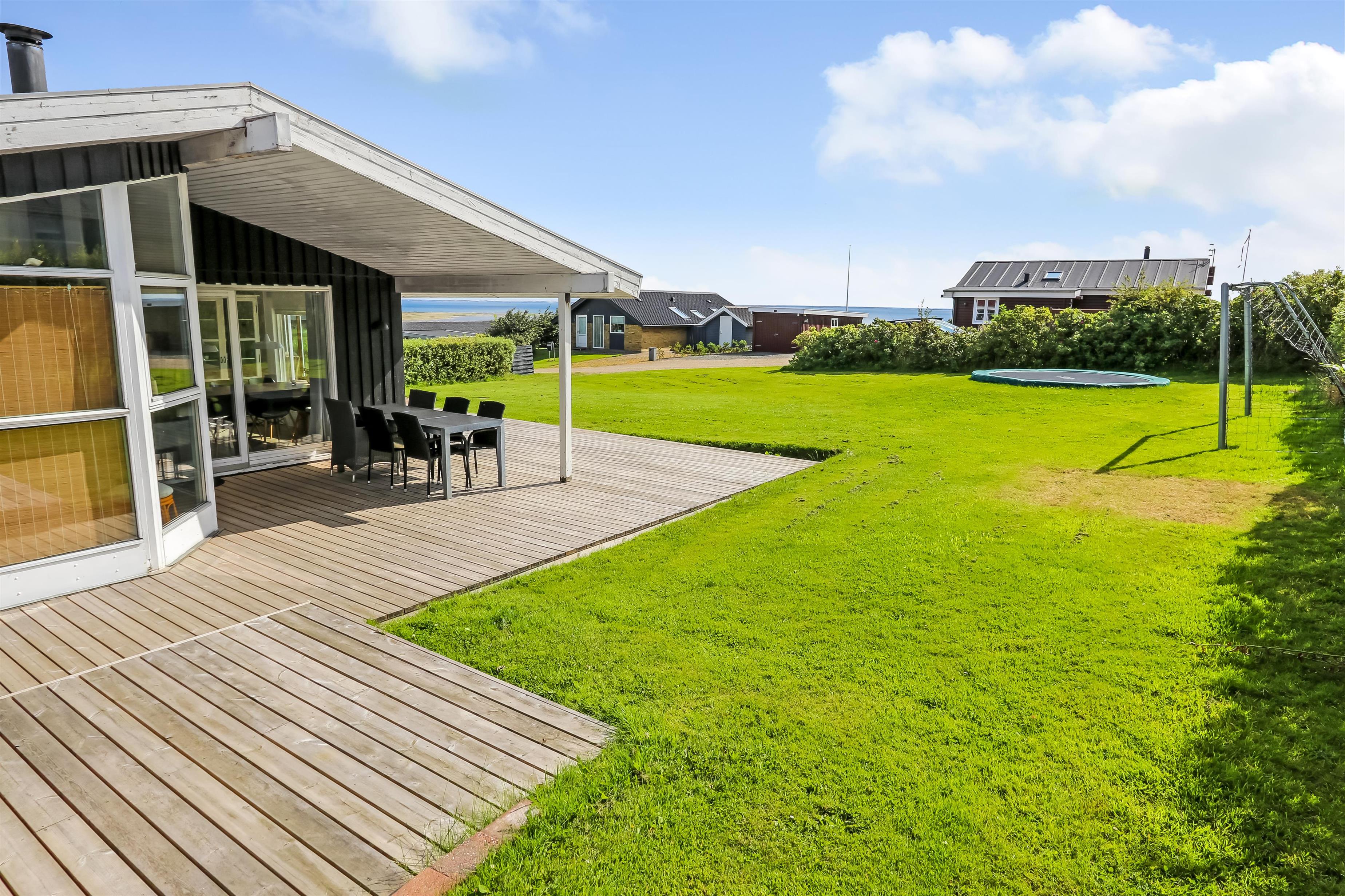 Das Haus liegt auf einem 820 m2 große Grundstück. Fantastische, teilweise überdachte Terrassenanlage mit Gartenmöbeln und Grill und Sonnenliegen. Hier können Sie immer einen Platz in der Sonne finden. Gartenmöbel, Sonnenliege und Grill können Sie nach Bedarf auf der Terrasse umstellen. Von der Terrasse haben Sie Zugang zu einer prachtvollen Gartenstube mit Korbmöbeln und Blick zum Limfjord. Auch auf der hinteren Seite vom Haus gibt es eine teilweise überdachte Holzterrasse mit Gartenmöbeln und Blick über die Landschaft. Hohe, ungestörte Lage auf einem ruhigen Weg. Gepflegtes Grundstück mit Trampolin und bloß 300 m vom Limfjord entfernt. Vom Haus aus gibt es Wegsysteme, die Sie in wenigen Minuten direkt zum Fjord, Badestrand und Badesteig führen. In der Nähe vom Haus gibt es einen schönen Naturspielplatz aus Holz mit Rutsche, Schaukel und vielem anderen. Hier gibt es auch einen Eiskiosk und ein Restaurant, die nur in der Saison geöffnet haben. Außerdem liegt das Haus bloß 4 km vom Lemvig Ort mit vielen Geschäften, Fischrestaurant, Kino, Skaterbahn, Museum u.a entfernt.