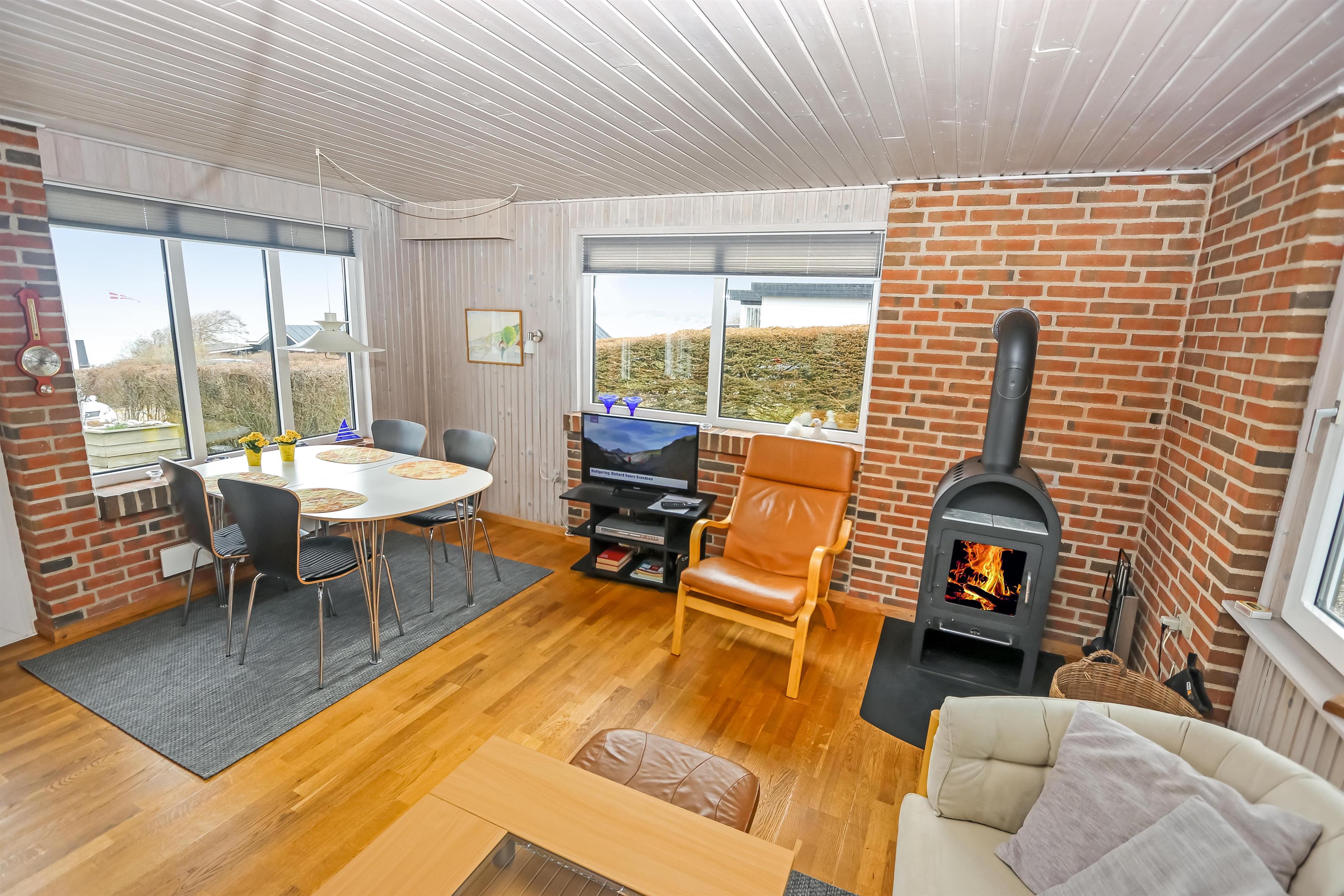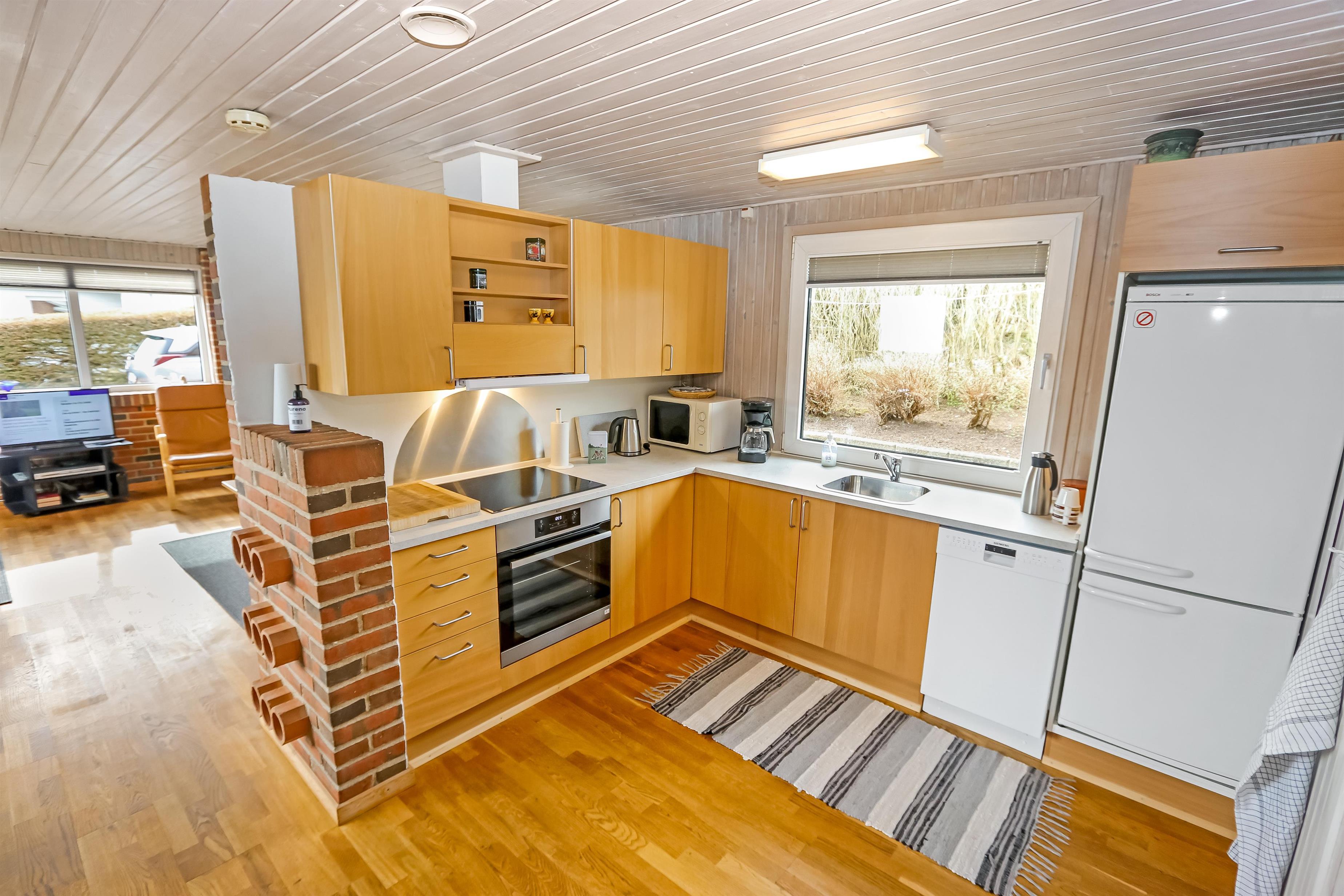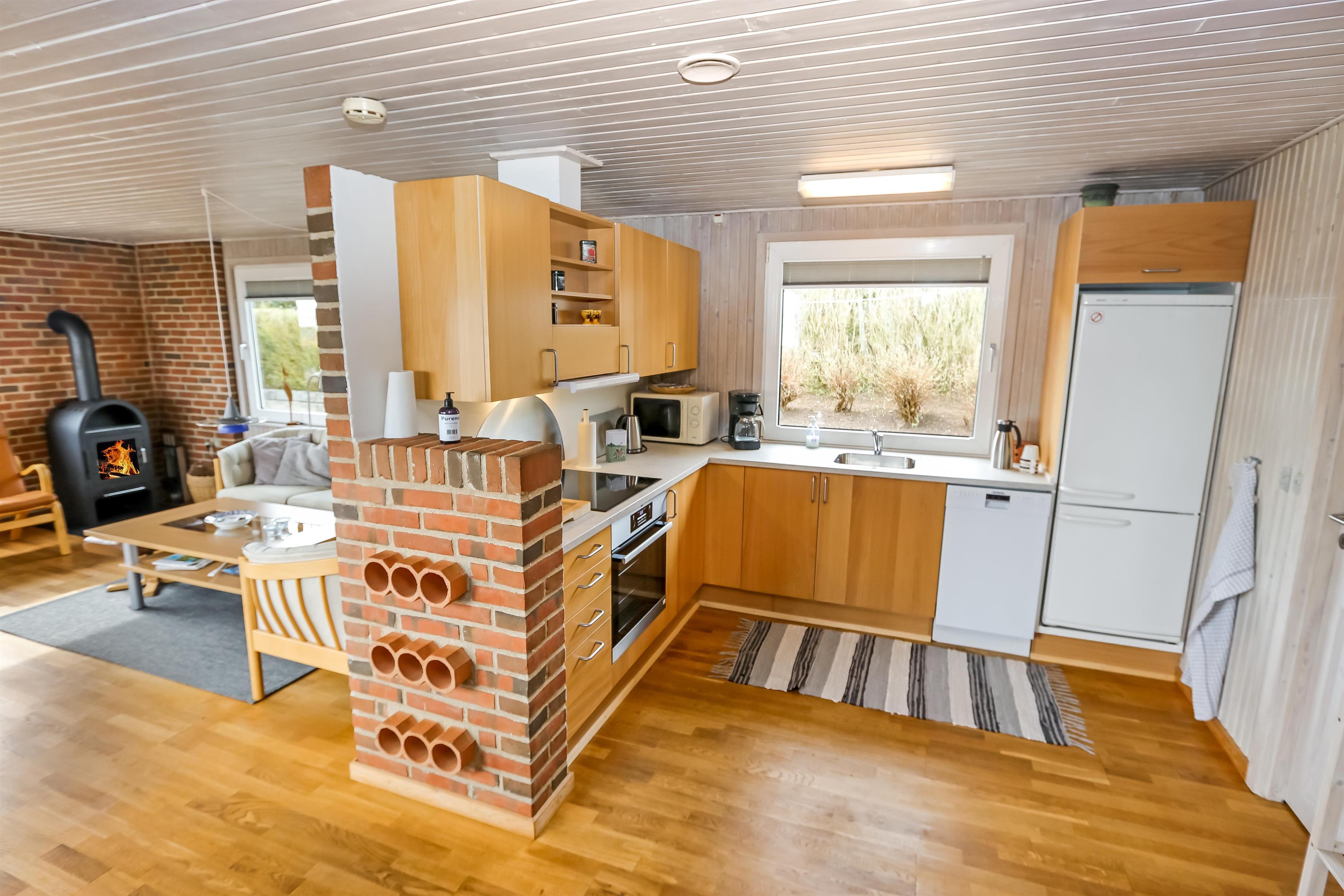 Schöner Wohnraum mit Kaminofen, Farb-TV mit dänischen und deutschen Programmen und Polstermöbeln, der Boden ist mit Holz ausgelegt. Schöne Küchenabteilung mit Ceranfeld, Mikrowelle, Geschirrspüler und Kühlschrank mit Gefrierfach. Grosses Badezimmer mit Fliesen ausgelegt. Hier gibt es Toilette, Waschbecken, Waschmaschine und Dusche. 3 Schlafräume: 1 DB + 1B + 1B. Dieses Haus ist ein Nichtraucher-Haus und Haustiere sind nicht erlaubt.