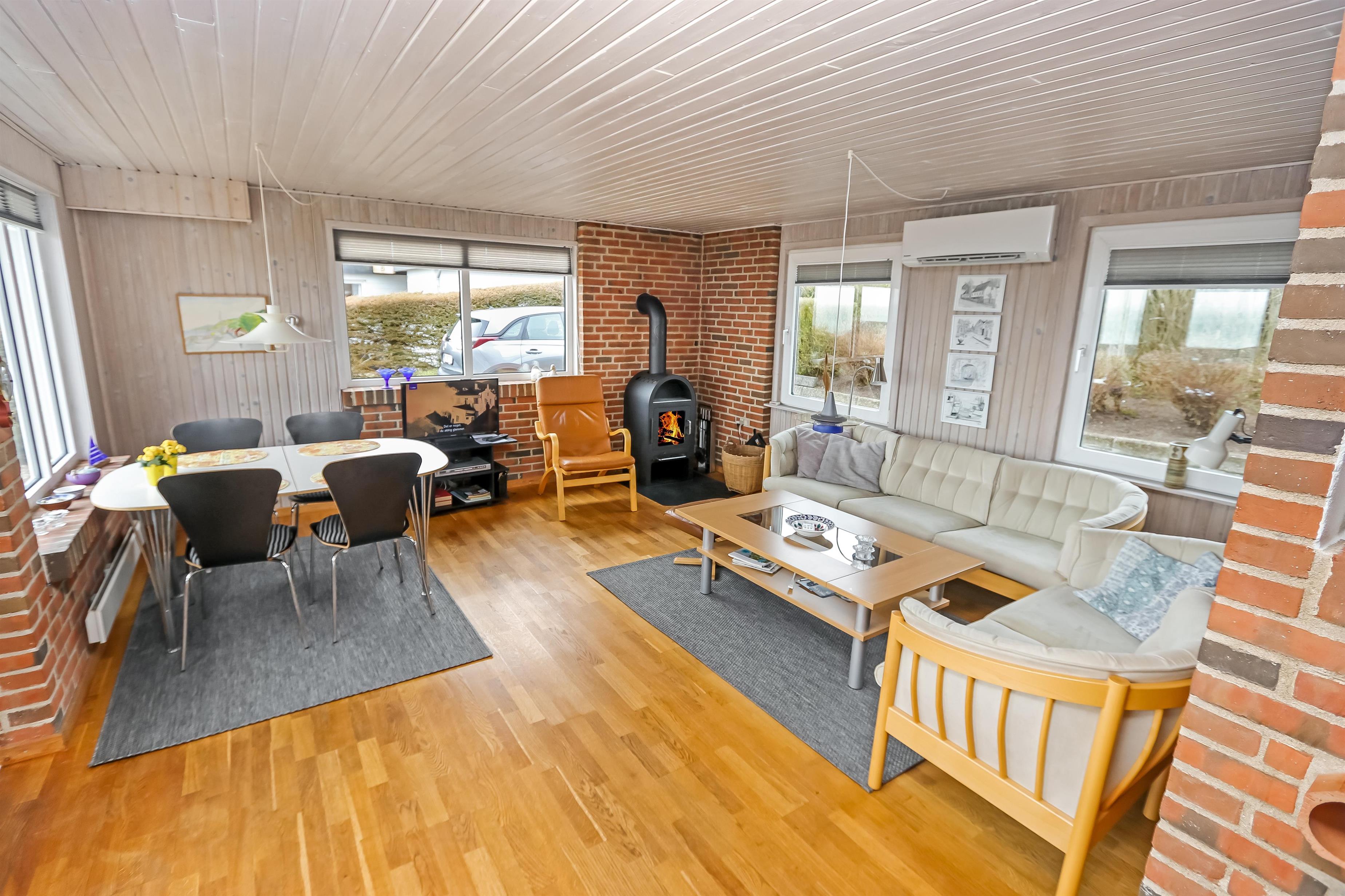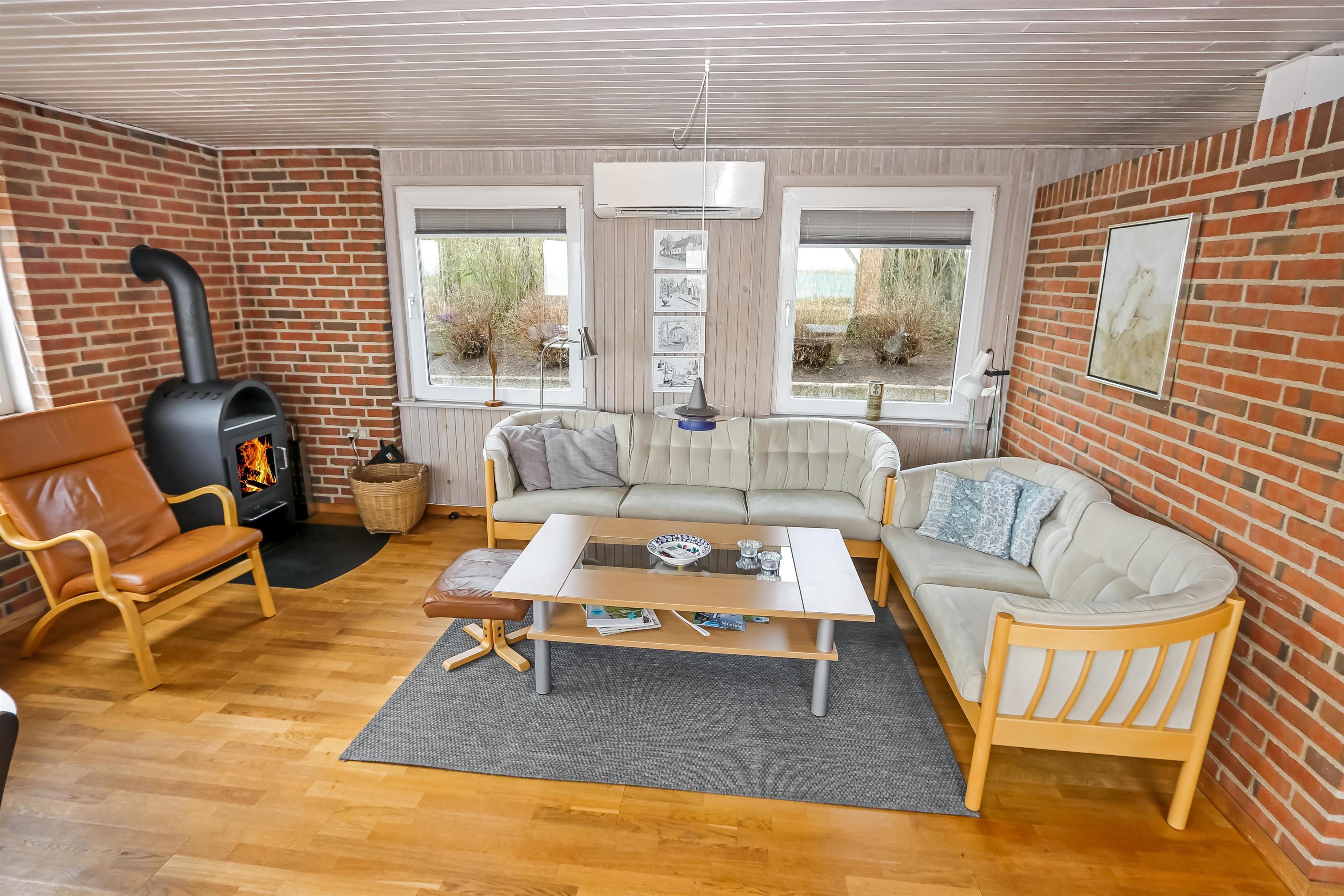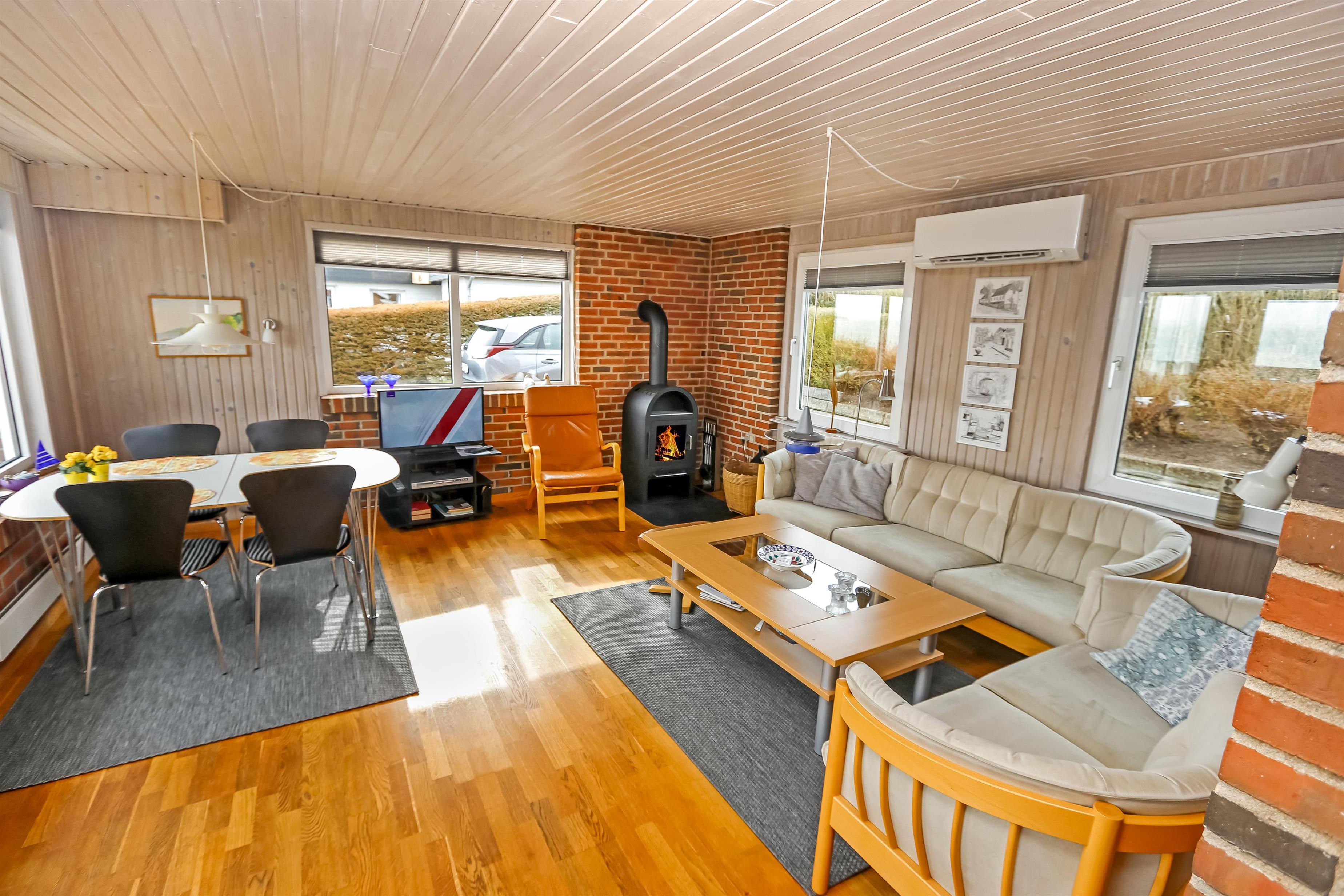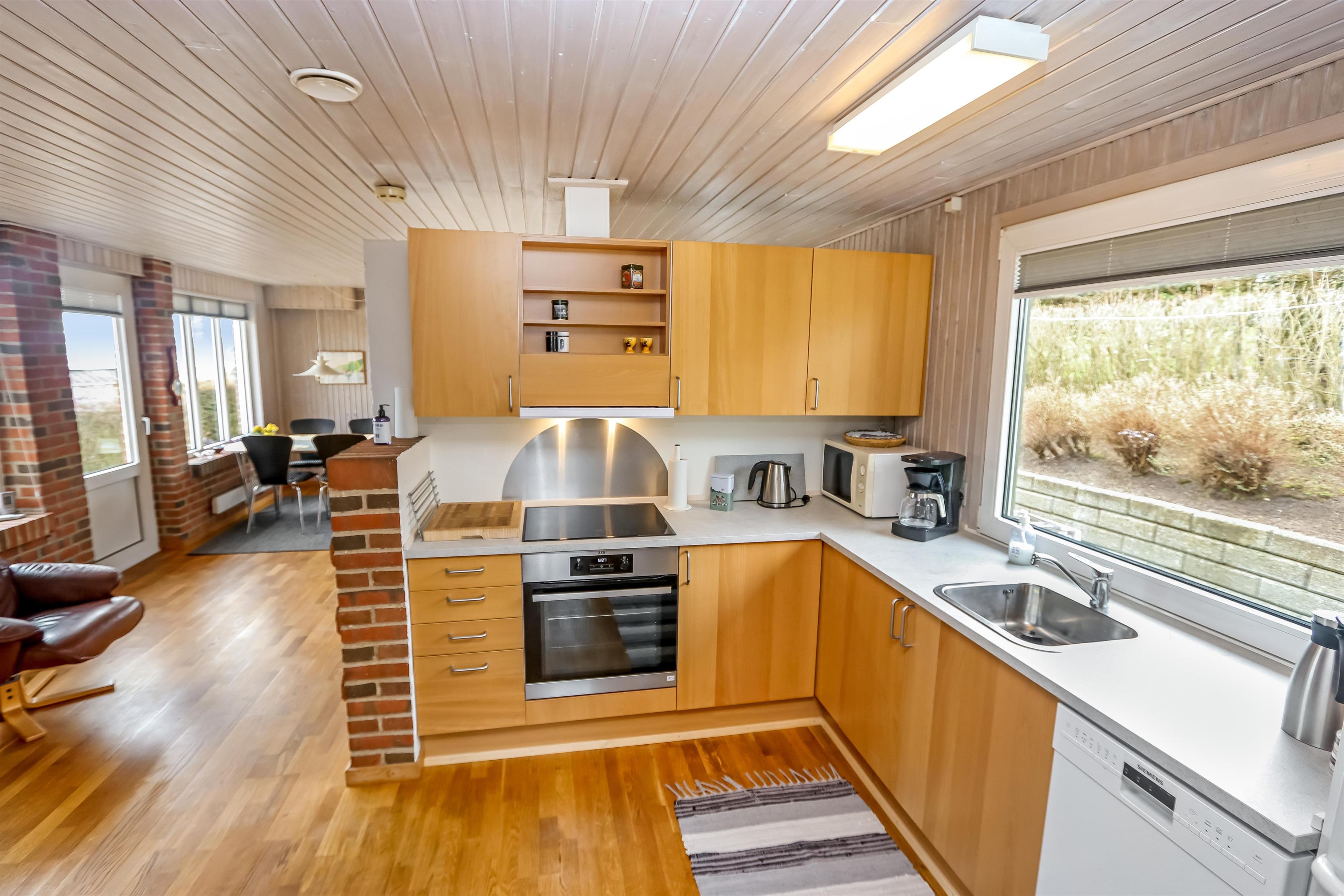 Schöner Wohnraum mit Kaminofen, Farb-TV mit dänischen und deutschen Programmen und Polstermöbeln, der Boden ist mit Holz ausgelegt. Schöne Küchenabteilung mit Ceranfeld, Mikrowelle, Geschirrspüler und Kühlschrank mit Gefrierfach. Grosses Badezimmer mit Fliesen ausgelegt. Hier gibt es Toilette, Waschbecken, Waschmaschine und Dusche. 3 Schlafräume: 1 DB + 1B + 1B. Dieses Haus ist ein Nichtraucher-Haus und Haustiere sind nicht erlaubt.