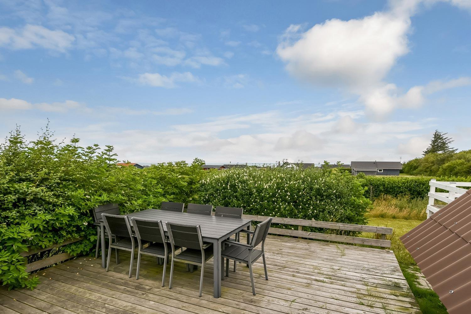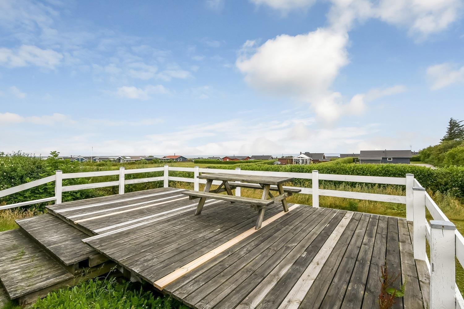 Die Terrassenanlage beim Haus ist etwas Besonderes; und mit den 2 Terrassen finden Sie immer einen Platz in die Sonne. Egal welche Terrasse Sie wählen, es gibt immer einen tollen Blick. Viele Gartenmöbel sind vorhanden. Sonnenliegen und Grill können auf den Terrassen nach Belieben verschoben werden. Hoch, ungestörte Lage an einem kleinen Seitenweg auf einem sehr gepflegten Grundstück mit 1002 m² gelegen. Vom Haus aus gibt es ein schönes Wegesystem, das in wenigen Minuten direkt zum Wasser führt. Etwa 300 m vom Haus liegt der neue Naturspielplatz mit schönen Holzspielgeräten , mit Fussballplatz und einer Rutsche. Ausserdem ist es nicht weit zum Einkauf oder zum Strand bei Gjellerodde. Lemvig ist nur 4 km entfernt und hier finden Sie viele gute Geschäfte, Fischrestaurants, Museum u.a.