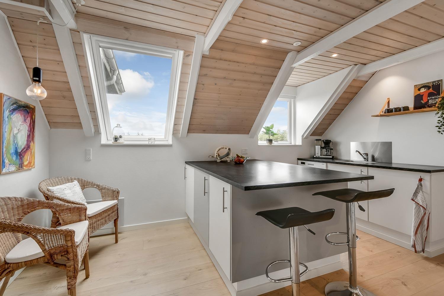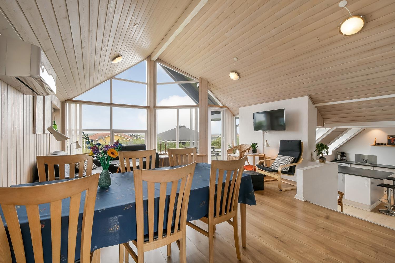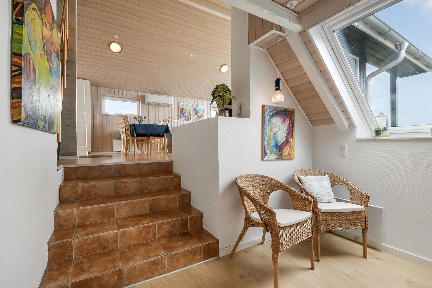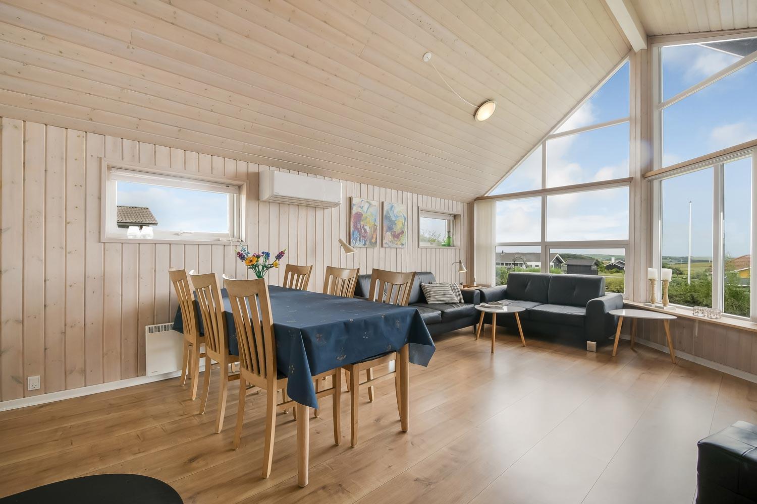 Holzferienhaus mit mehreren Ebenen, freiem WLN und einer einzigartigen Lage. Fantastischer Blick über den Limfjord, Gjellerodde und nach Thyborøn und Agger, mit der Nordsee am Horizont. Das Haus ist ideal für 2 Erwachsene oder für eine Familie, die etwas ganz besonderes zum Wohnen wünscht in einer kinderfreundlichen Gegend mit vielen Möglichkeiten.