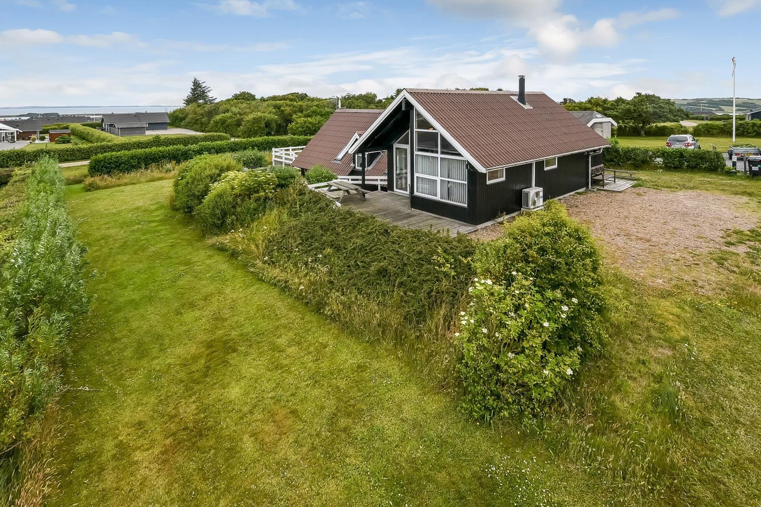 Holzferienhaus mit 90 m². Das Haus ist gemütlich eingerichtet mit z.B. schöner Möblierung und praktischem Fliesenboden im Wohnraum , von dem aus man einen ganz besonderen Blick über den Limfjord und die Landschaft hat; ein ganz besonderer Platz in einem ganz besonderen Haus. 3 Schlafräume: 1DB + 1DB + 1E. Es gibt auch einen offenen Schlafboden mit 2 Matratzen, zur Freude von Kindern und kindlichen Seelen. Ein Flur heisst Sie wilkommen. Der Wohnraum ist mit TV mit dänischen DR-TV und deutschen Programmen, CD, Radio und einem gemütlichen Kaminofen ausgestattet.Über eine Treppe gehen Sie runter in einen neueren Anbau, in dem die Küche des Hauses liegt. Die Küche ist mit E-Herd, Abzugshaube, Mikrowelle, Kühlschrank mit kleinem Gefrierfach und mit einem praktischen Fliesenboden ausgestattet. Es gibt 2 Badezimmer mit Toilette, Dusche, Waschbecken und Flieseboden. Rauchen ist nicht gestattet. Max. 2 Haustiere sind erlaubt. Es gibt auch ein Warmepumpe im Haus und es macht die Heizungskosten günstiger. Es ist ein besonderes Ferienhaus mit toller Aussicht.
