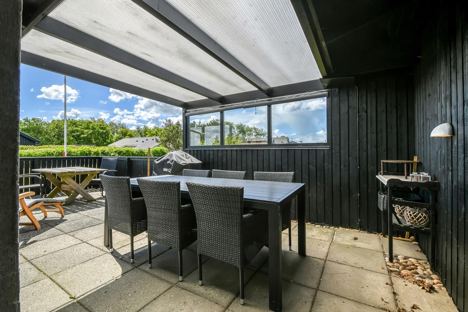 Im Außenbereich erwarten Sie sowohl eine überdachte als auch eine offene Terrasse mit Gartenmöbeln, Sonnenliegen und einem Gasgrill – perfekt für lange Sommerabende mit Blick auf das Wasser. Das Grundstück ist von viel Grün umgeben und bietet reichlich Platz zum Spielen, Ausruhen und Beisammensein.