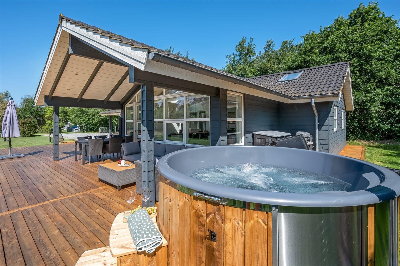 Geräumiges Ferienhaus in naturschöner Lage nahe dem Meer mit Sauna, Whirlpool und großer Terrasse.