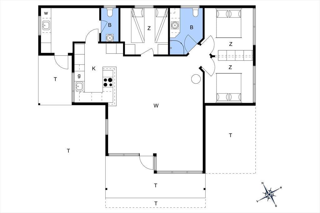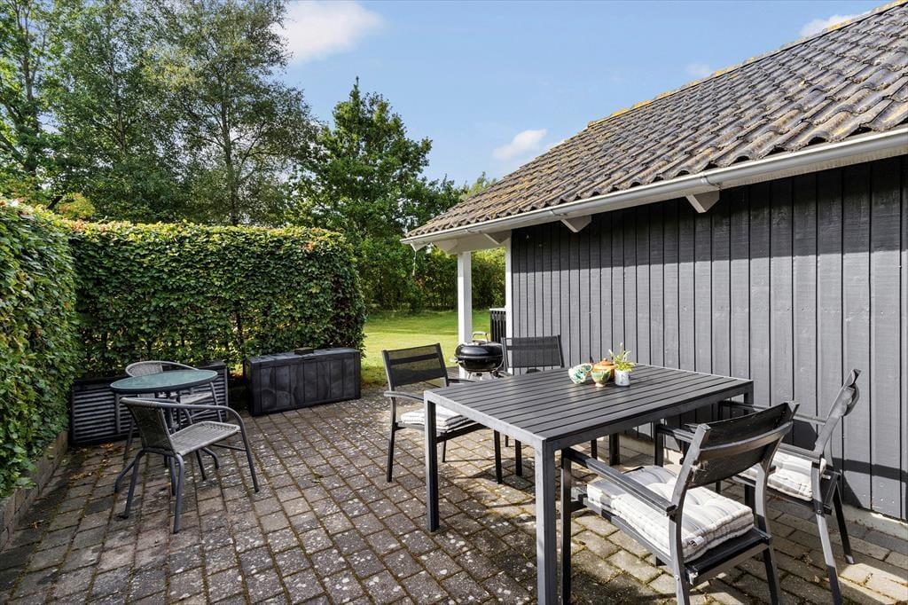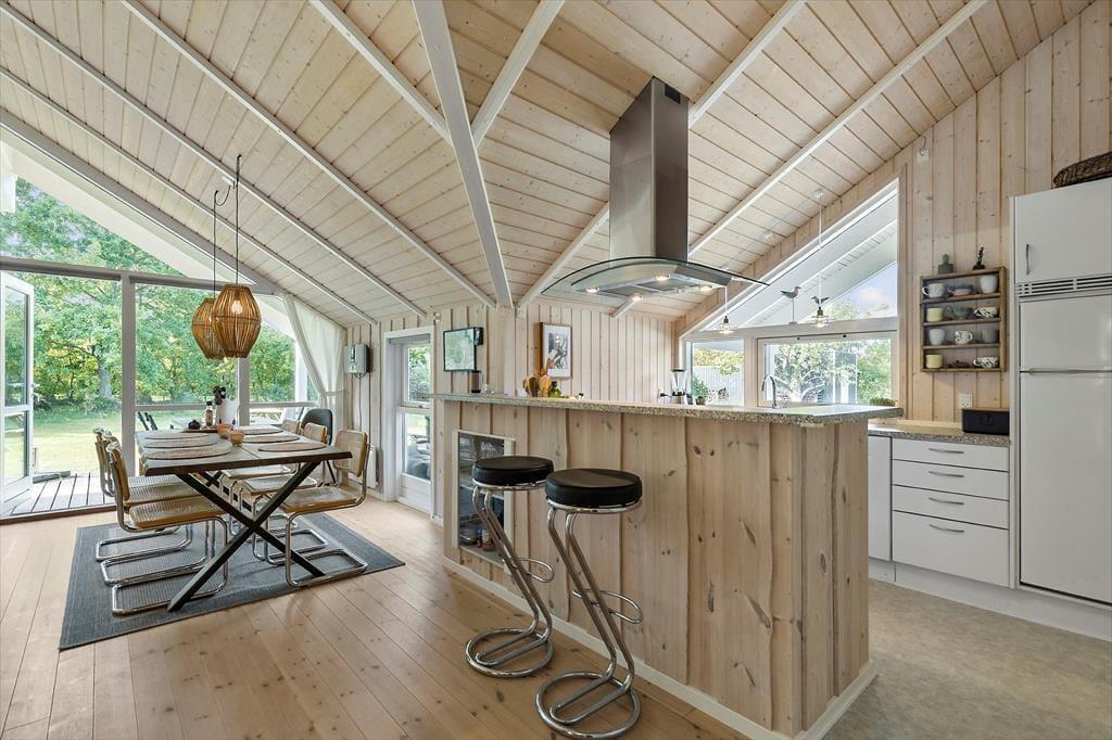 Am Gjerrild Nordstrand erwartet Sie dieses ansprechende Ferienhaus, das vom Eigentümer selber gebaut, nur selber genutzt und stets gehegt und gepflegt wurde. Nun haben wir das Vergnügen, Ihnen dieses Haus zur Vermietung anbieten zu dürfen. Das Herzstück des Holzferienhauses ist der Wohnraum, von dem Sie in alle anderen Räumlichkeiten und hinaus auf die schönen Terrassen und in den Garten gelangen. Hinter der Eingangstür erwartet Sie der Hauswirtschaftsbereich mit einer Waschmaschine und angenehm viel Platz, sodass Sie hier problemlos auch einen Kinderwagen und Ähnliches unterstellen können. Vom Hauswirtschaftsbereich gehen Sie weiter in die schöne Küche, die alles beinhaltet, was Sie für die Zubereitung köstlicher Urlaubsmahlzeiten benötigen. Dank der offenen Raumaufteilung bleiben Sie selbst während Ihrer Arbeiten in der Küche wunderbar ins Familienleben integriert. Die offene Küche fügt sich harmonisch in den geräumigen Wohnraum ein, wo unter anderem ein Kaminofen für eine richtig gemütliche, typisch dänische Ferienhausatmosphäre sorgt. Der Wohnraum bietet rund um den Esstisch und in der Sofagruppe angenehm viel Platz für alle Mitreisenden. Die Schlafplätze verteilen sich auf drei ansprechende Schlafzimmer, von denen zwei mit je einem Doppelbett eingerichtet sind. Im dritten Schlafzimmer stehen ein Etagenbett und ein Einzelbett von 120x200. Ein gutes Badezimmer und ein Gäste-WC sind selbstverständlich ebenfalls vorhanden.