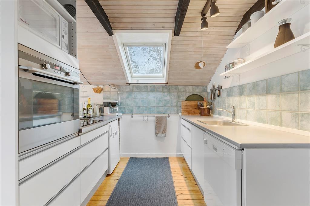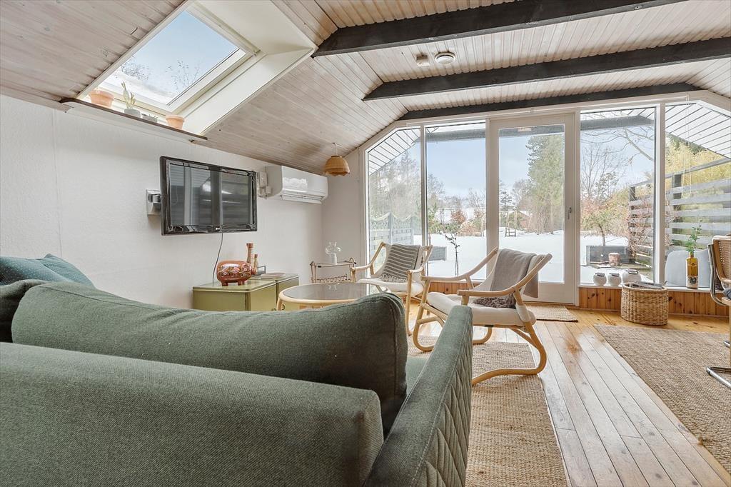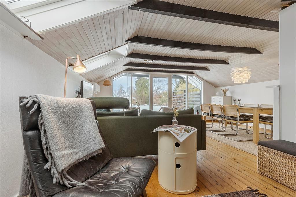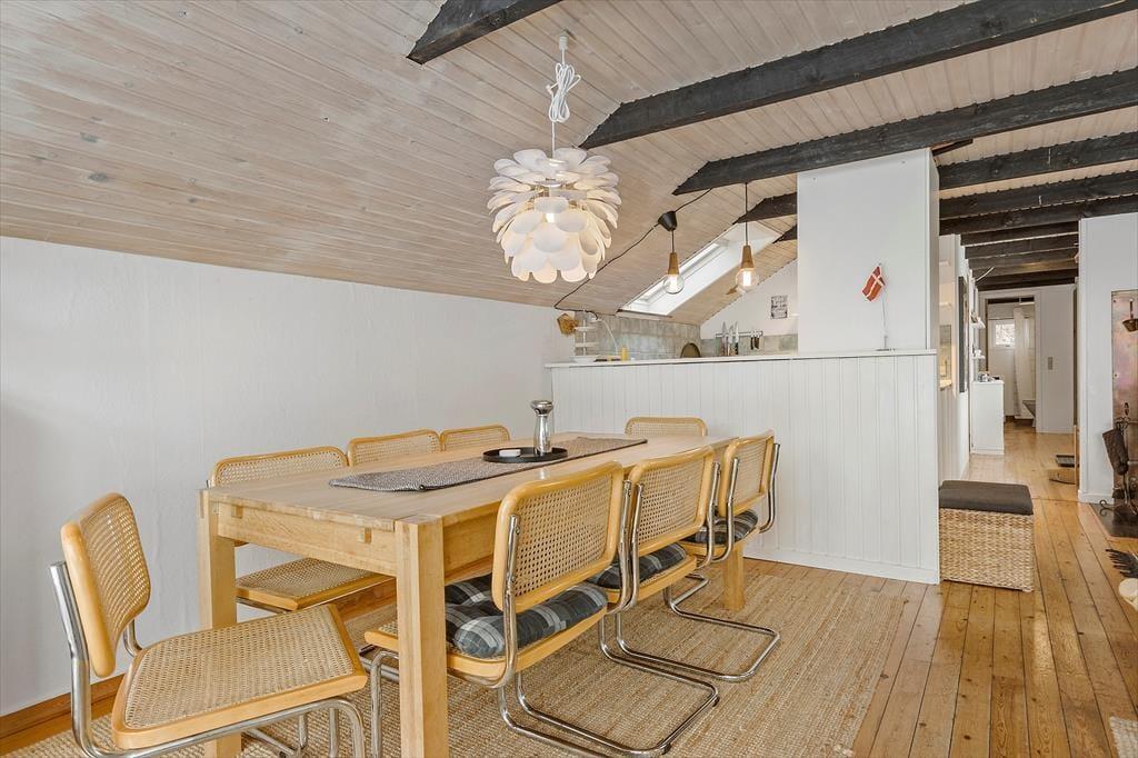 Das Ferienhausgebiet Gjerrild ist für seinen schönen Badestrand und die ganzjährig schönen umliegenden Laubwälder bekannt. Die Gegend bietet gute Wander- und Fahrradwege, die entlang der Nordküste Djursland verlaufen und zu aktiven Stunden animieren. Zu den beliebtesten Urlaubsaktivitäten gehören das Angeln im Meer und das Pflücken von Austern. In den Sommermonaten können Sie beim 400 Meter entfernten Campingplatz frische Brötchen, Eis und warme Snacks kaufen. Auf Ihrem Weg zum Haus passieren Sie das Dorf Gjerrild, bei dem es sich um ein schönes kleines Dorf mit einer Kirche, einem Lebensmittelgeschäft und einem Landgasthof handelt. Im Landgasthof freut man sich darauf, Sie mit traditionellen dänischen Gerichten verwöhnen zu dürfen. Hinter dem Gasthof befindet sich Schloss Sostrup, das eine interessante Historie und ein abwechslungsreiches Aktivitätsprogramm bietet. Nach rund 15 Kilometern erreichen Sie die Hafenstadt Grenaa mit beschaulichen Fußgängerzonen und vielen Cafés. Im beliebten Kattegatcentret können Sie mit Haien und Pinguinen auf Tuchfühlung gehen. Vom Hafen legen täglich die Fähren zur Insel Anholt und nach Schweden ab. Rund eine Stunde Fahrzeit trennt Sie von der malerischen Handelsstadt Ebeltoft, vom faszinierenden Nationalpark Mols Bjerge und den familienfreundlichen Touristenattraktionen Djurs Sommerland, Ree Park und Skandinavisk Dyrepark.