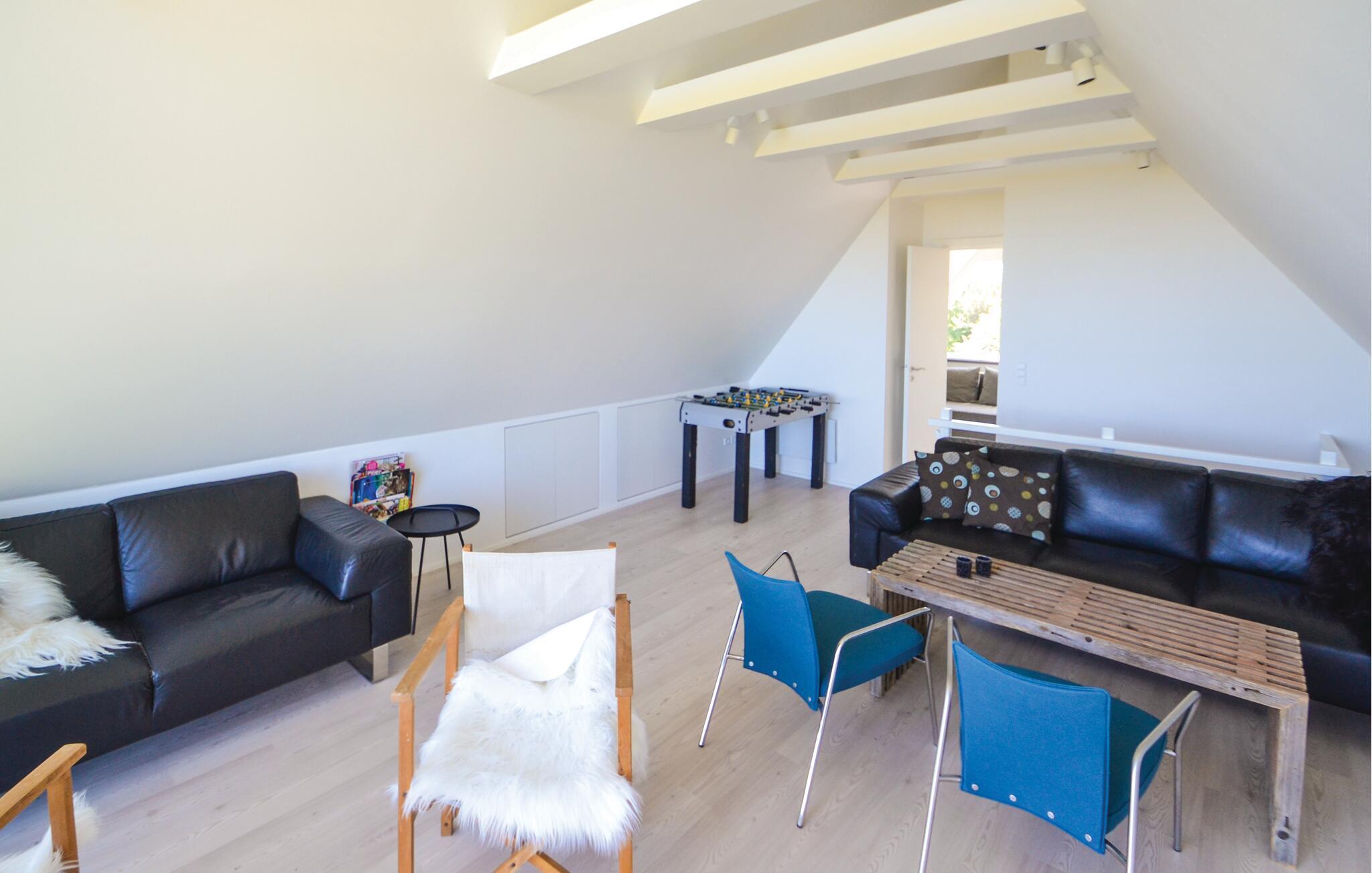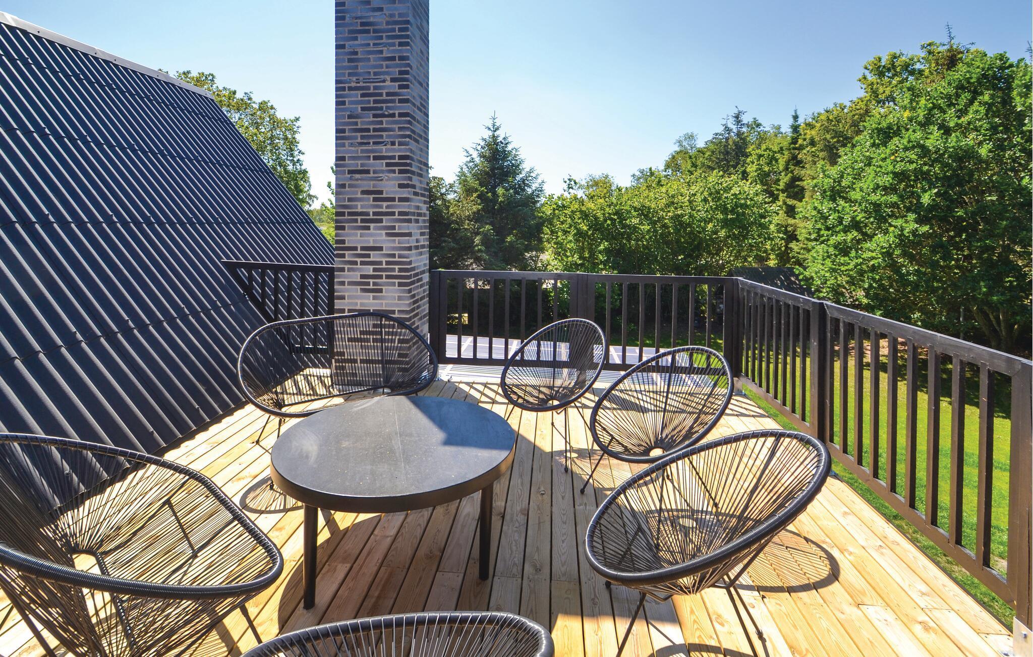 In Gjerrild auf Norddjursland liegt dieses schöne Ferienhaus auf einem geschlossenen Grundstück mit beheizter Badetonne, Außensauna und einer schönen Aussichtsterrasse im 1. Stock. Das Haus ist sehr gut eingerichtet in hellen Farben und einem minimalistischen Stil. Von der großen Wohnküche mit Kaminofen und Billardtisch führt eine Treppe zum 1. Stock, wo das Wohnzimmer mit sichtbaren Balken und einem großen Fenster schönes Licht und eine herrliche Aussicht auf das Kattegat bietet. Von der Wohnküche gelangen Sie auf die große Terrasse, die sich an mehreren Seiten des Hauses befindet und wo Sie bis spät abends sitzen können. Auf der einen Seite des Hauses liegt der Wellnessbereich und auf der anderen Seite ist der Fischnreinigungsplatz für Ihren Fang von der Küste.
