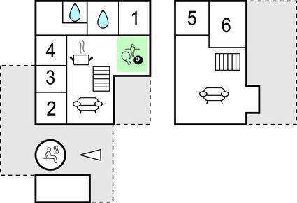 Badezimmer (nr. 1) - WC. Warmes und kaltes Wasser. Dusche