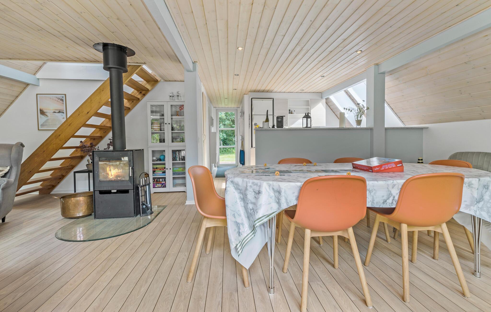 Das Haus hat 2 Etagen, im Erdgeschoss liegen die Wohnküche und ein Badezimmer. Terrasse im Erdgeschoss. Die Küste bietet wirklich gute Angelmöglichkeiten, packen Sie also die Angelrute ein. Reservieren Sie auch einen Urlaubstag für das Djurs Sommerland, das die Kinder bestimmt lieben werden.
