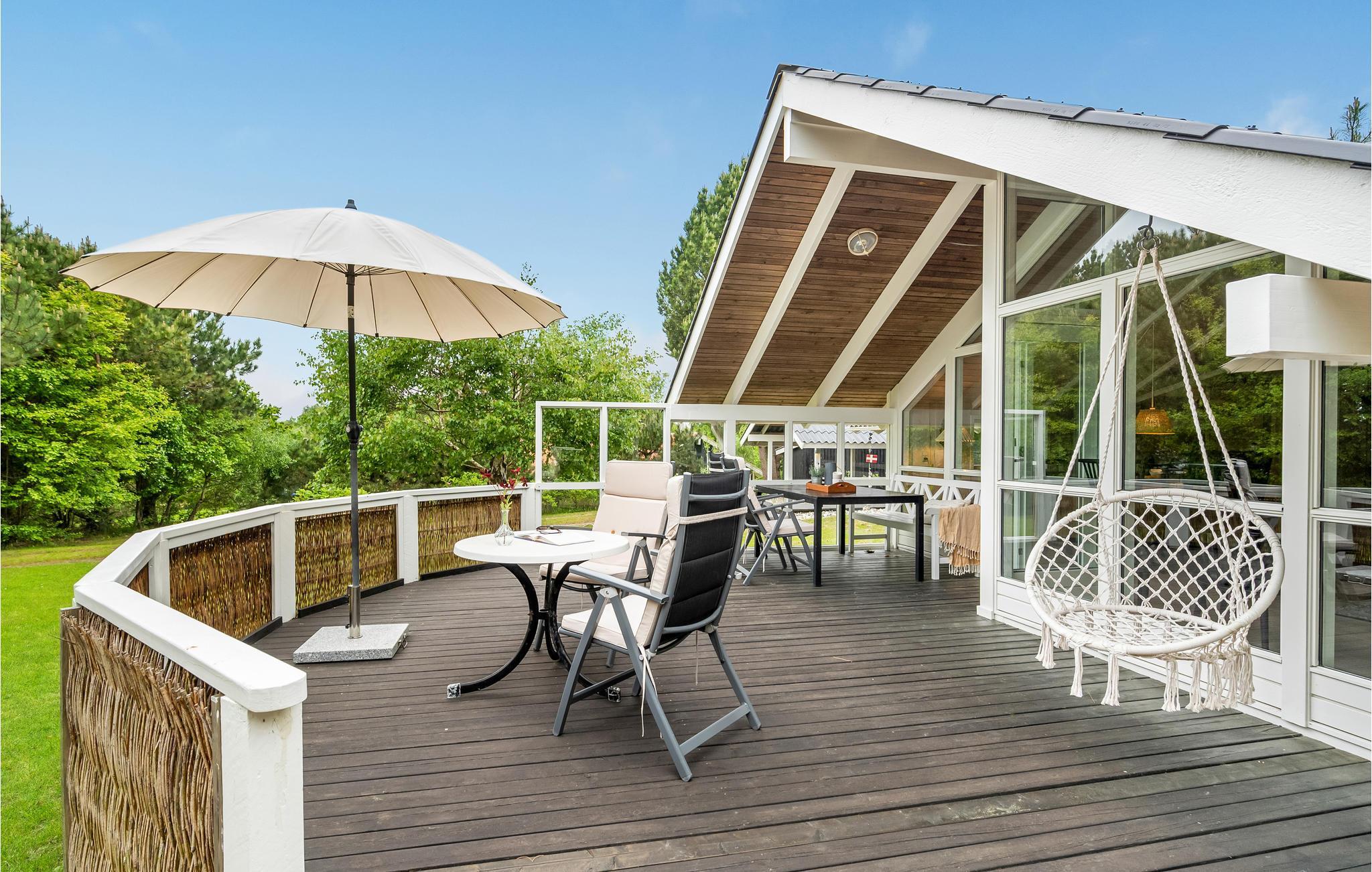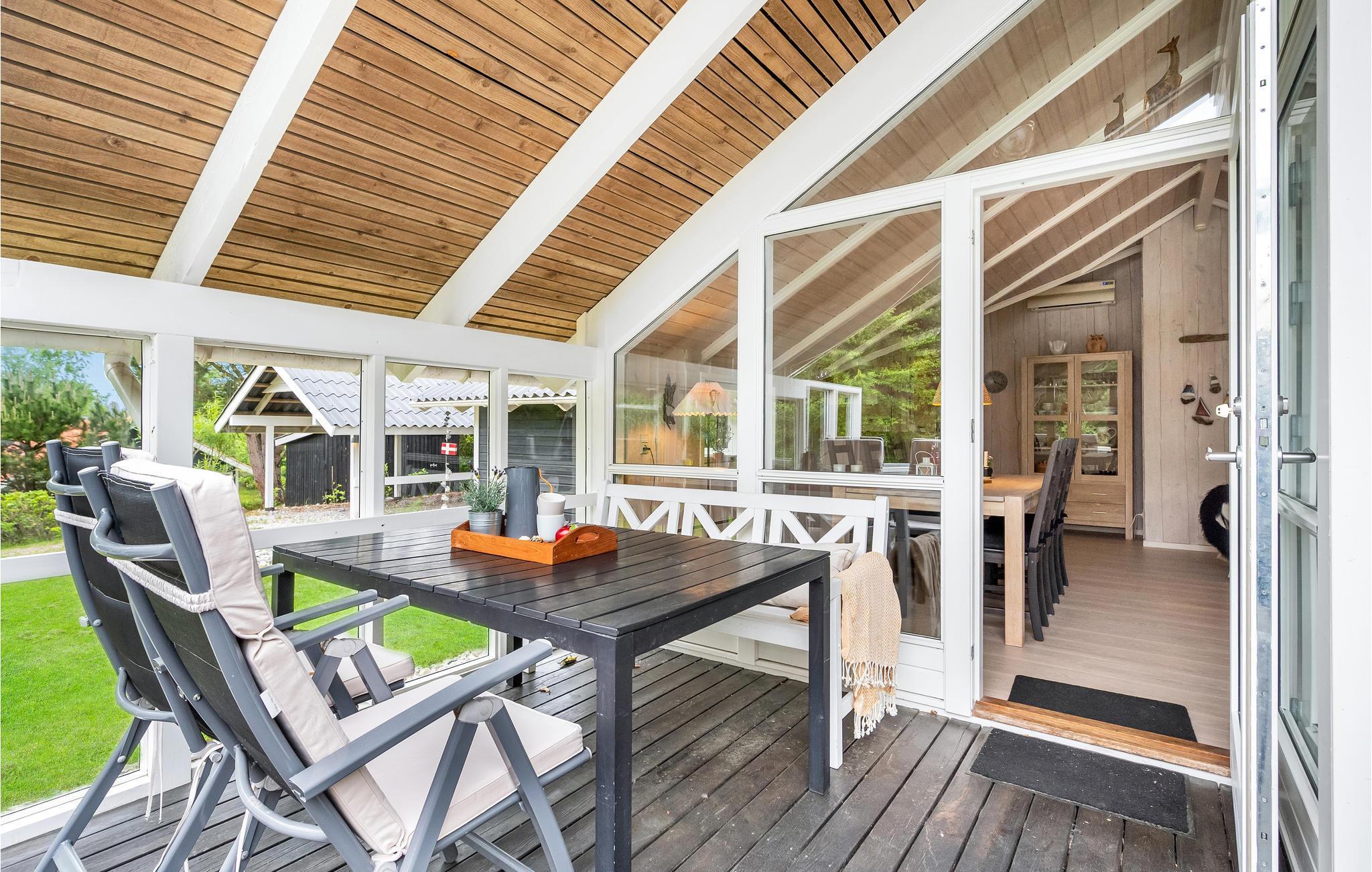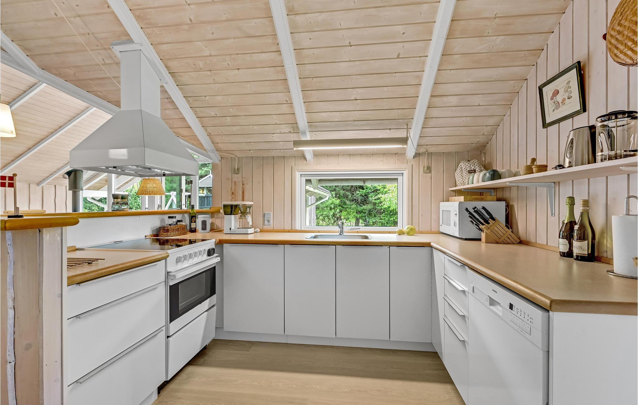 In Gjerrild Nordstrand liegt dieses wahrlich gut gepflegte Ferienhaus. Das große Grundstück ist mit Gras bewachsen und beherbergt Spielgeräte für Kinder. Beim Haus ist auch ein schöner Carport. Das Haus enthält alles, was Sie sich wünschen, vier Schlafzimmer, zwei Badezimmer, Massagewanne, Sauna. Küche und Wohnzimmer in einem Raum mit Ausgang zur Terrasse davor. Wenn es kühl wird, zünden Sie im Kaminofen ein Feuer an. Am Badestrand finden Sie Dünensenken zum Sonnen. Wenn Sie gerne anglen, dann haben Sie das Glück an einem fischreichen Abschnitt der Küste Urlaub zu machen. Die großen Wälder der Umgebung laden zum Spazieren. Besuchen Sie Djurs Sommerland mit Ihren Kindern. Vielleicht fahren Sie auch nach Grenaa?
