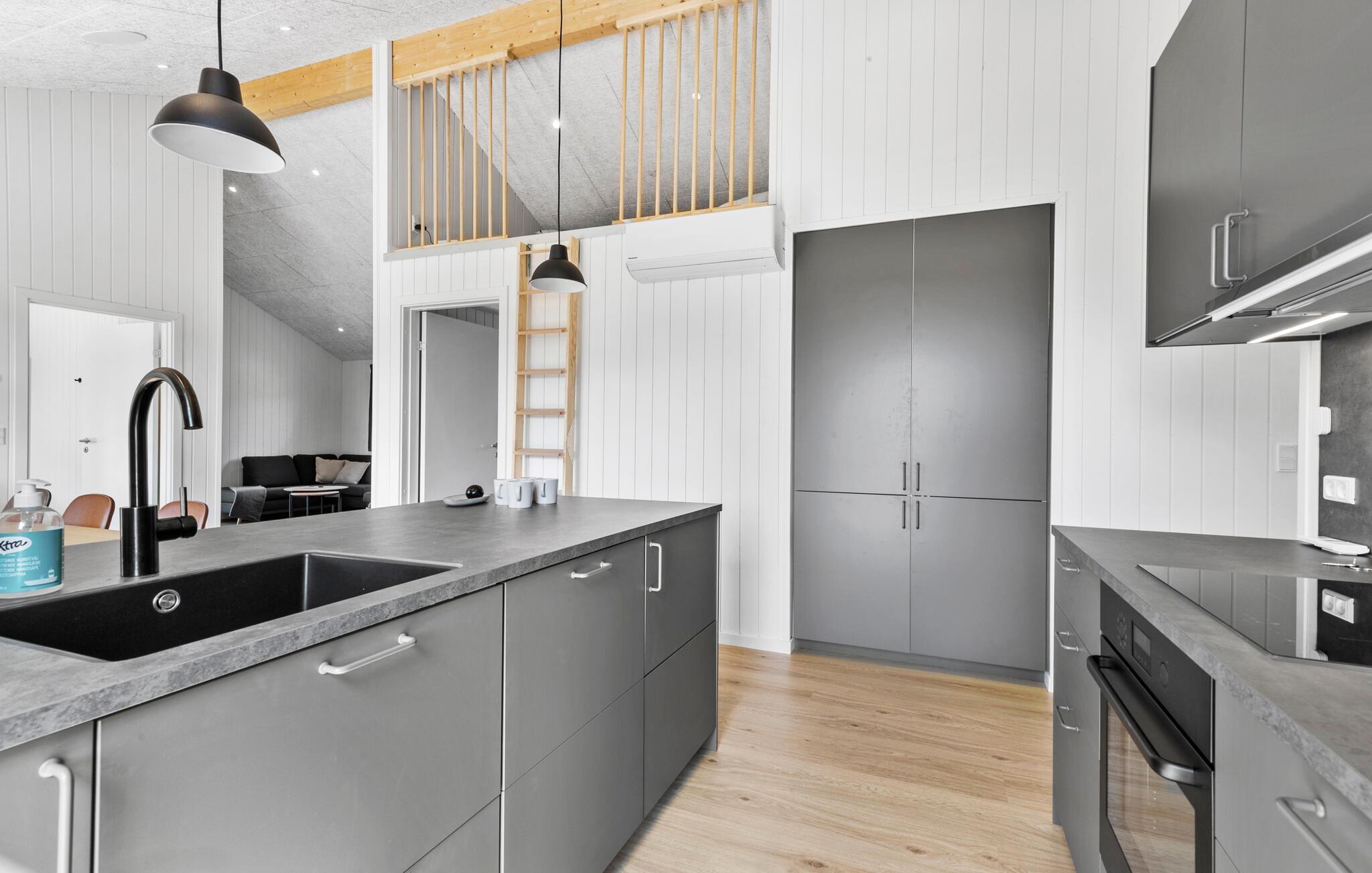 Willkommen in diesem großzügigen Urlaubsdomizil, in dem Sie mit Freunden oder der Familie eine entspannte Auszeit erwartet. Genießen Sie gesellige Kochabende und Mahlzeiten in großer Runde im offenen Wohnbereich, plaudern Sie bei einem Glas Wein über vergangene Zeiten oder streamen Sie nach einem langen Tag an der frischen Luft einen spannenden Film, der allen zusagt.