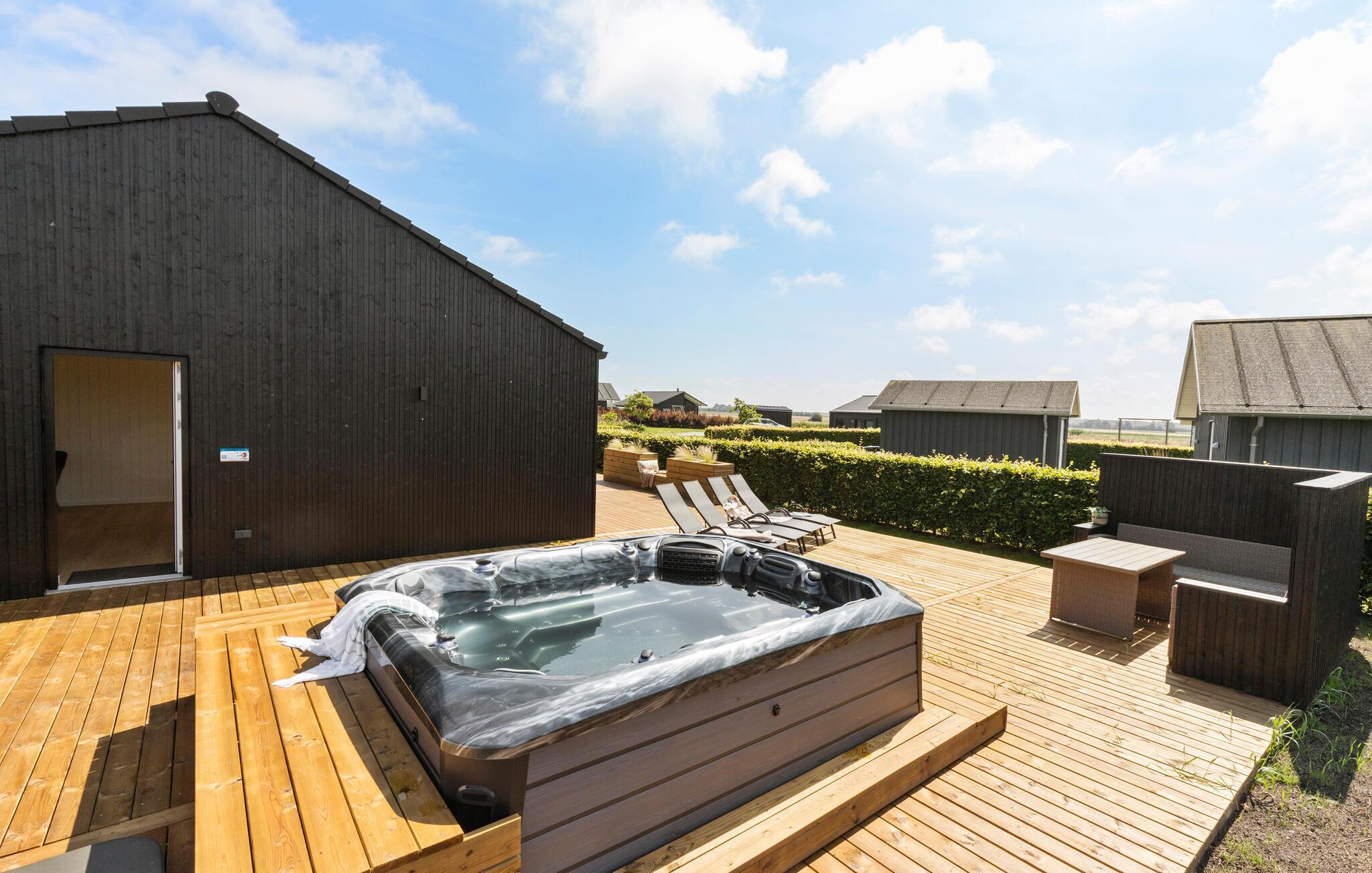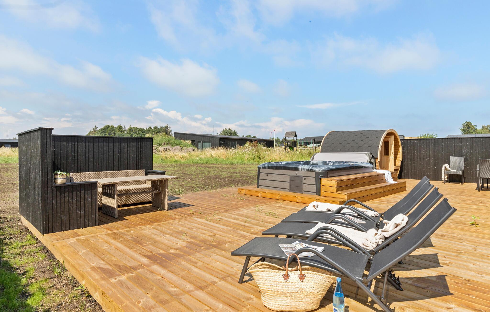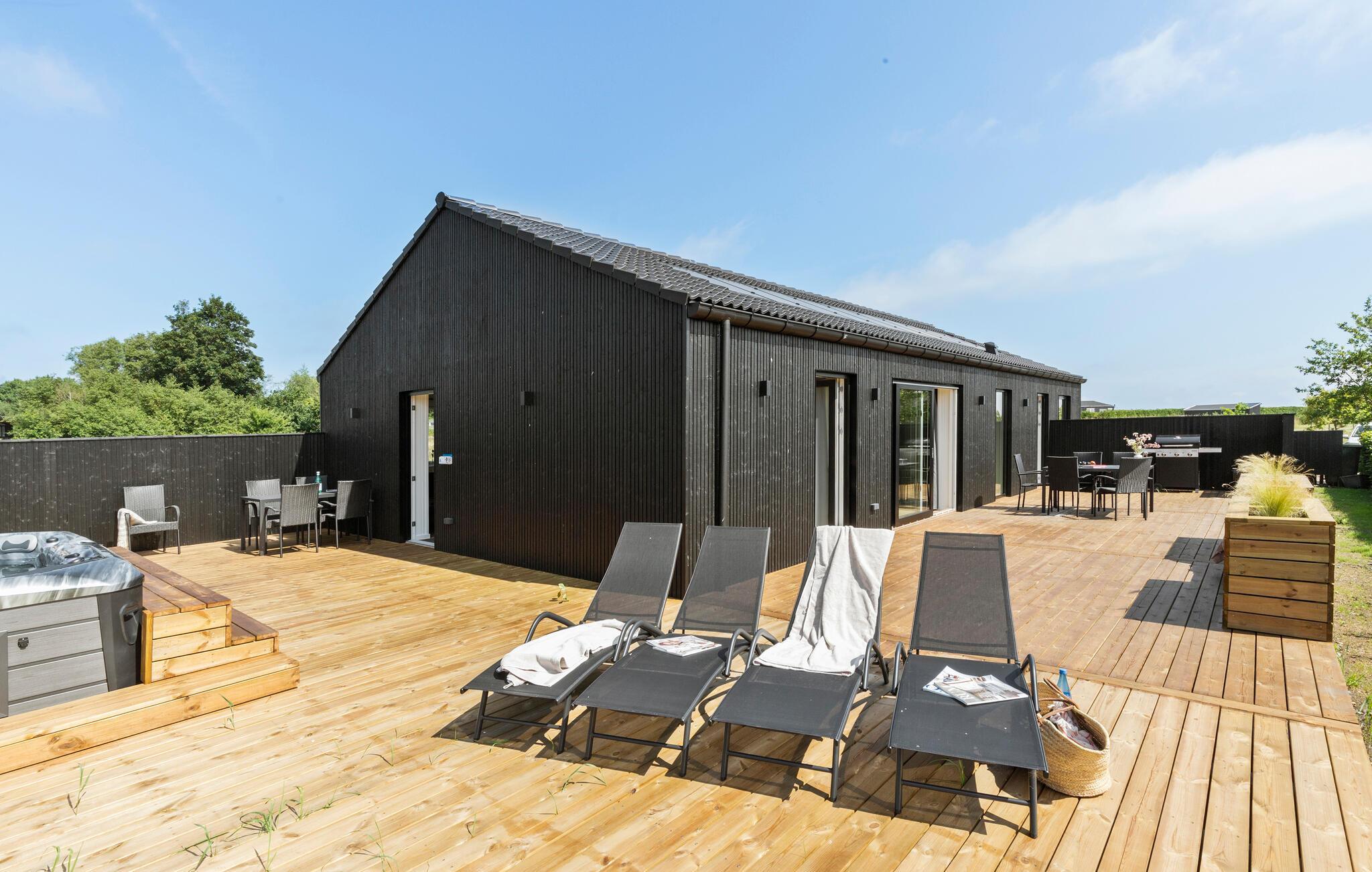 Erleben Sie Erholung in diesem modernen Ferienhaus mit Sauna, Whirlpool und großer Terrasse nahe dem Strand in Grenaa.