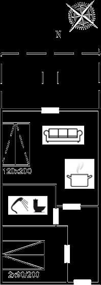 Es gibt einen Schlafraum. 2 Schlafplätze in einem Doppelbett. 2 Schlafplätze auf einer Doppelschlafcouch. Ferner steht ein Kinderbett zur Verfügung.