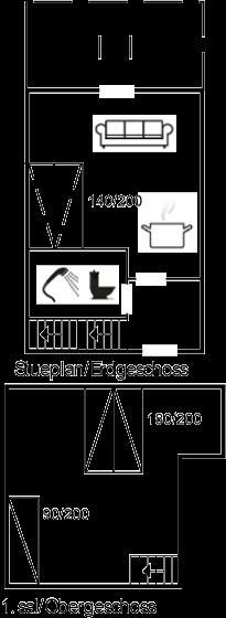 Es gibt einen Schlafraum. 2 Schlafplätze in einem Doppelbett.1 Schlafplatz in einem Einzelbett. 2 Schlafplätze auf einer Doppelschlafcouch. Ferner steht ein Kinderbett zur Verfügung.